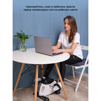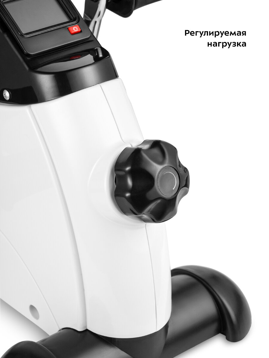 Велотренажёр KT-4003 — отличная альтернатива велосипеду. Теперь не нужно ждать хорошей погоды, ведь тренажёр можно использовать в любое удобное время! При регулярных тренировках улучшается работа сердца, сердечно-сосудистой и дыхательной систем. КТ-4003 один из самых компактных и простых тренажёров. В отличие от обычных велотренажёров у него нет стойки с сиденьем, поэтому его можно установить там, где вам удобно. Можно тренироваться, сидя в любимом кресле перед телевизором или на рабочем месте. KT-4003 позволяет регулировать сопротивление педалей, плавно изменяя нагрузку при необходимости. Чем выше сопротивление педалей, тем труднее крутить их. Нагрузку можно регулировать во время занятия. Велотренажёр KT-4003 не занимает много места в квартире. Для удобного перемещения устройства на корпусе расположена ручка. Велотренажёр оснащен монитором, на котором отображаются параметры тренировки: длительность тренировки, «пройденная» дистанция, количество оборотов педалей за тренировку, суммарное количество оборотов педалей и количество потребленных калорий. Кнопка «Режим» включает монитор и переключает отображение параметров на нём. При выборе режима сканирования на мониторе попеременно будут отображаться все параметры. Нажмите и удерживайте кнопку «Режим» около 3 секунд, если хотите сбросить все параметры. Широкие нескользящие педали с рельефной поверхностью и ремешками обеспечивают правильную фиксацию ступней. Надёжные упоры велотренажёра имеют резиновые вставки, которые позволят безопасно использовать тренажёр как на полу так и на столе и предотвратят его скольжение. Всё необходимое для сборки велотренажёра в комплекте. При регулярных тренировках на тренажёре повышается выносливость, подвижность суставов, улучшается форма бедер и живота, мышцы ног становятся более развитыми.