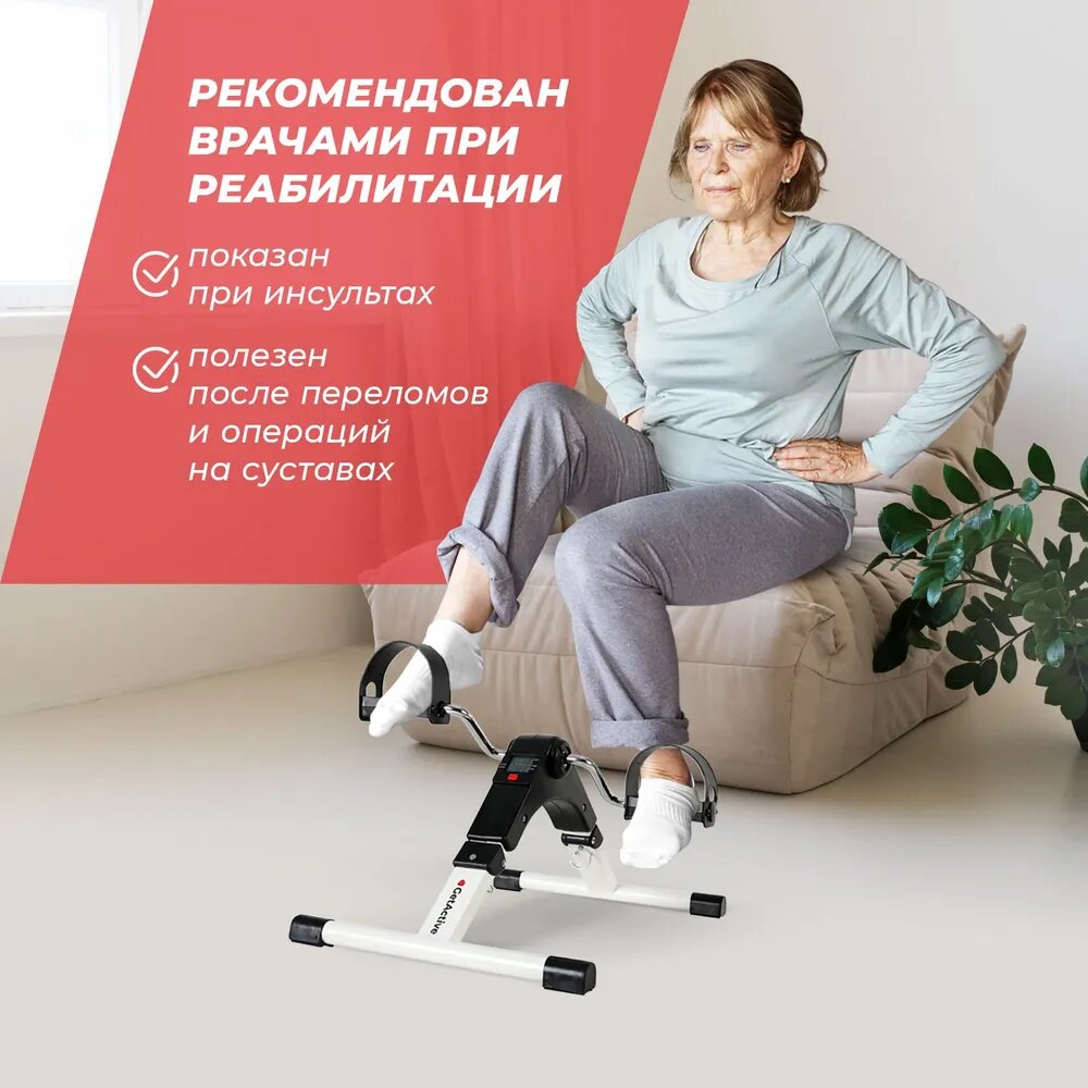 Купить Велотренажер мини для рук и ног для дома GetActive ES-8110 белый, компактный домашний кардиотренажер напольный с доставкой по всей России.