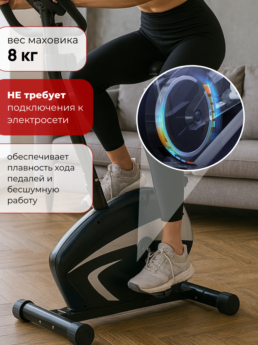Велотренажер магнитный STARRKO silver line для эффективных домашних тренировок. Оснащен информативным дисплеем, на экране которого отображаются такие показатели, как время тренировки, скорость, расстояние, количество сожженных калорий и пульс. Есть специальная подставка под телефон или планшет, чтобы Ваши тренировки проходили интересно и продуктивно. Имеет магнитную систему нагрузки, что обеспечивает плавный и тихий ход тренажера. На руле с каждой стороны встроены кардиодатчики, которые контролируют сердцебиение в течение занятия. Также руль имеет регулировку под индивидуальные параметры. Сиденье регулируется как по горизонтали, так и по вертикали, что обеспечит выбор оптимального положения для каждого пользователя. Для удобства и безопасности есть фиксирующие ремни на педалях для удержания стопы. Велосипедный кардиотренажер имеет 8 уровней нагрузки для выбора оптимального уровня воздействия на мышечную систему. Максимальная масса пользователя - 120 кг. Для пользователей ростом от 140 до 175 сантиметров. Велотренажер имеет компактные размеры, что делает его удобным для дома и даже для офиса. Вело тренажер электромагнитный идеален для тех, кто хочет заниматься кардио тренировками в комфортных условиях дома, не тратя время на дорогу в спортзал. Имеются компенсаторы неровностей пола для обеспечения устойчивости велосипеда во время использования на любой поверхности Он предлагает широкие опции для тренировок различной сложности и подходит как для профессионалов, так и для начинающих, для похудения или реабилитации после травмы. Внимание! Велотренажер приходит в разобранном виде.