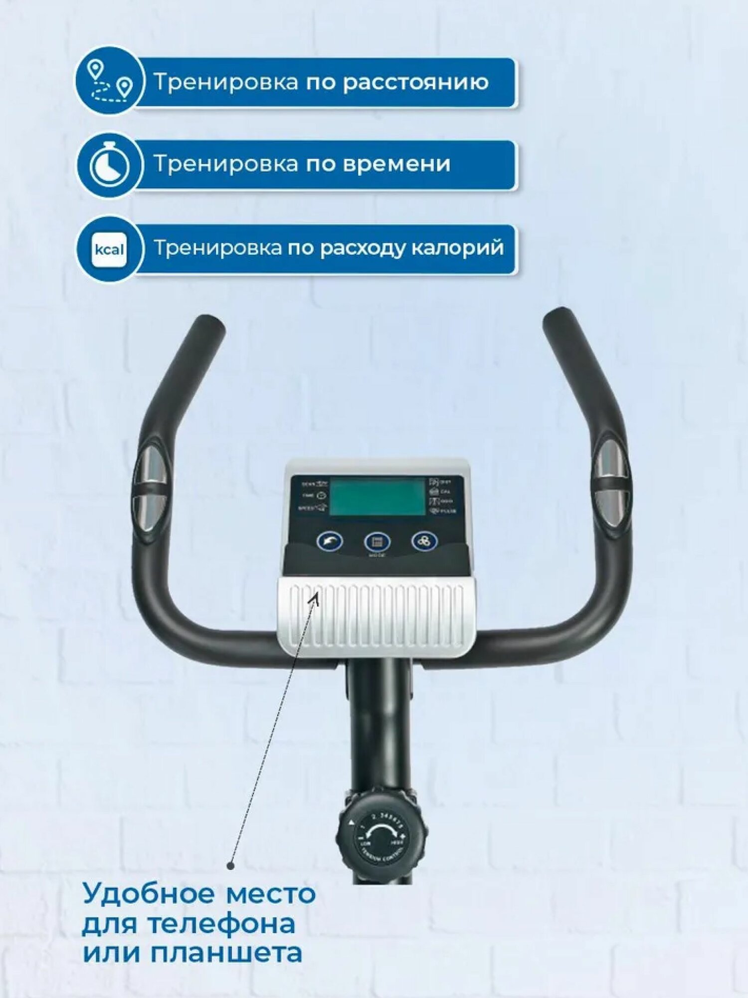 Тренажер отлично подходит для восстановления спортсменов. Велотренажер домашний имеет регулировку нагрузки (ступенчатая) имеет 8 уровней нагрузки. Велотренажер педальный для ног имеет следующие основные характеристики: кардиотренажер имеет тип нагрузки магнитный. Тип велотренажер. Конструкция велотренажер вертикальный. Велотренажер для дома для большого веса выдерживает нагрузку 100 кг. Тренажер велосипед имеет монохромный дисплей. Напольный велотренажер имеет измерительные датчики: пульс, время, дистанция, расход калорий, скорость, общее кол-во шагов. Кардиотренажер для дома имеет держатель для планшета. Велотренажер имеет компенсацию неровности пола. Регулярно используя велотренажер, Вы сможете укрепить сердечно сосудистую систему и приобрести хорошую физическую форму. Кардиотренажер для дома используется для тренировки ног. Велотренажер для дома с сиденьем - с его помощью Вы приобретете спортивную фигуру, повысите выносливость и привлекательность.
