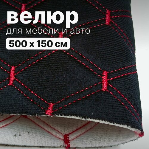 Велюр стеганый — 500 х 150 см — Черный ромб, нить красная — искусственный на поролоне: сравнение цен, характеристики, фото, актуальное наличие и цены.