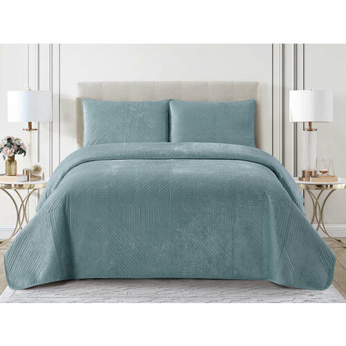 Велюровое покрывало Cleo VELLUTO евро макси 230х250, покрывало на кровать и диван с двумя наволочками, сине-зеленое: сравнение цен, характеристики, фото, актуальное наличие и цены.