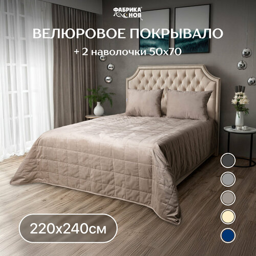 Велюровое стеганое покрывало на кровать 220х240 с наволочками 50×70 2шт, серо-коричневый: сравнение цен, характеристики, фото, актуальное наличие и цены.