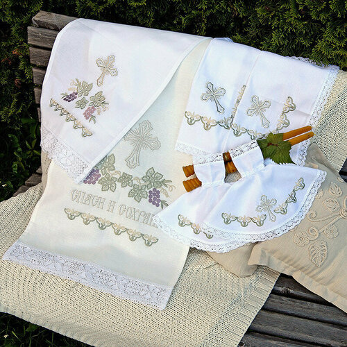 Венчальный набор «Лоза»: рушник, салфетки под венцы, салфетки для свечей, союзный рушник для рук: сравнение цен, характеристики, фото, актуальное наличие и цены.