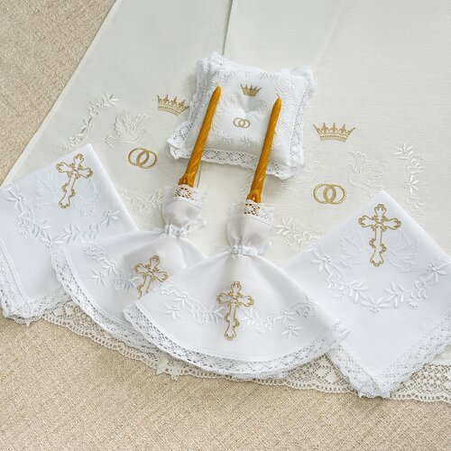 Венчальный, свадебный набор «Голуби»: венчальный рушник, салфетки под венцы, салфетки для венчальных свечей, подушечка для колец на свадьбу или венчание: сравнение цен, характеристики, фото, актуальное наличие и цены.