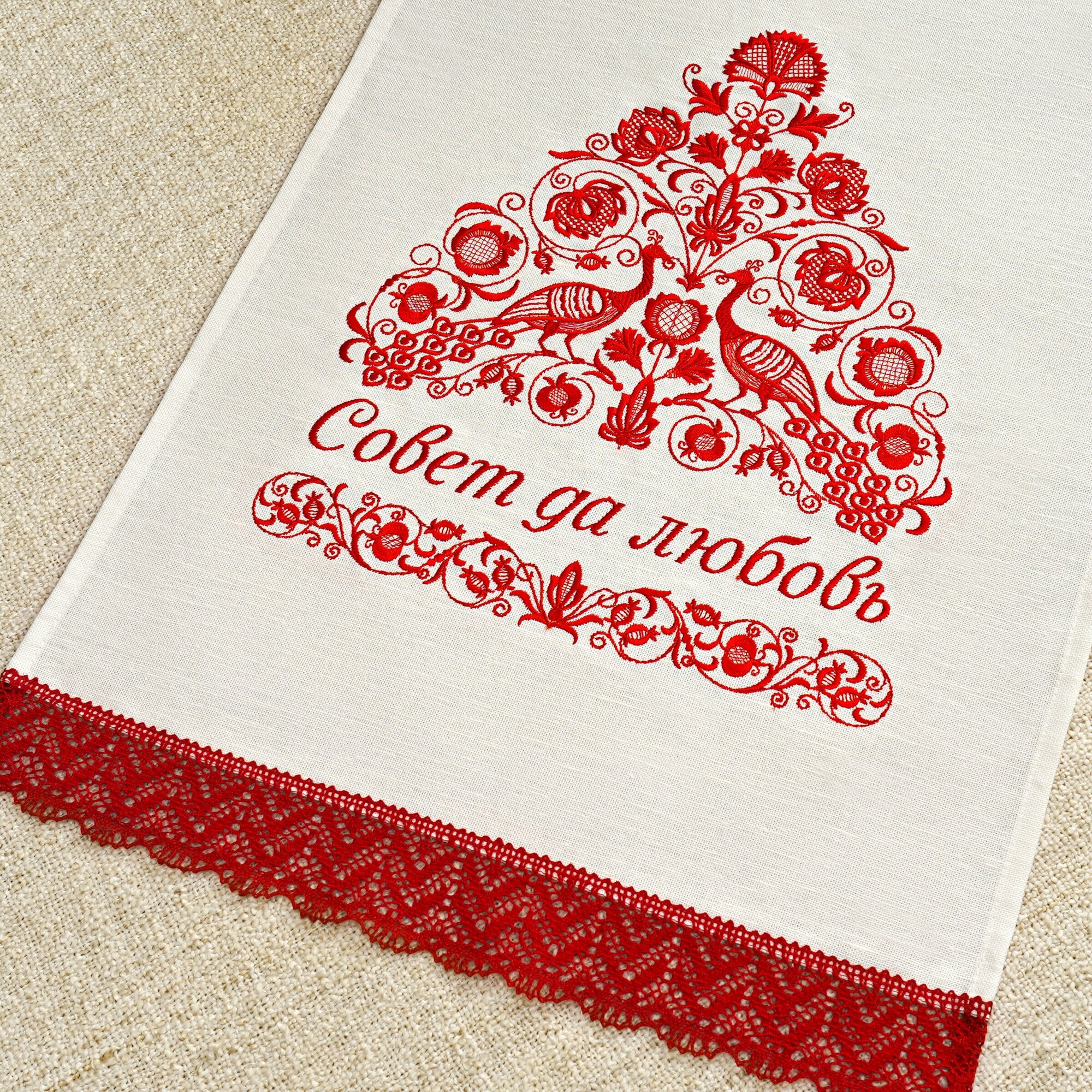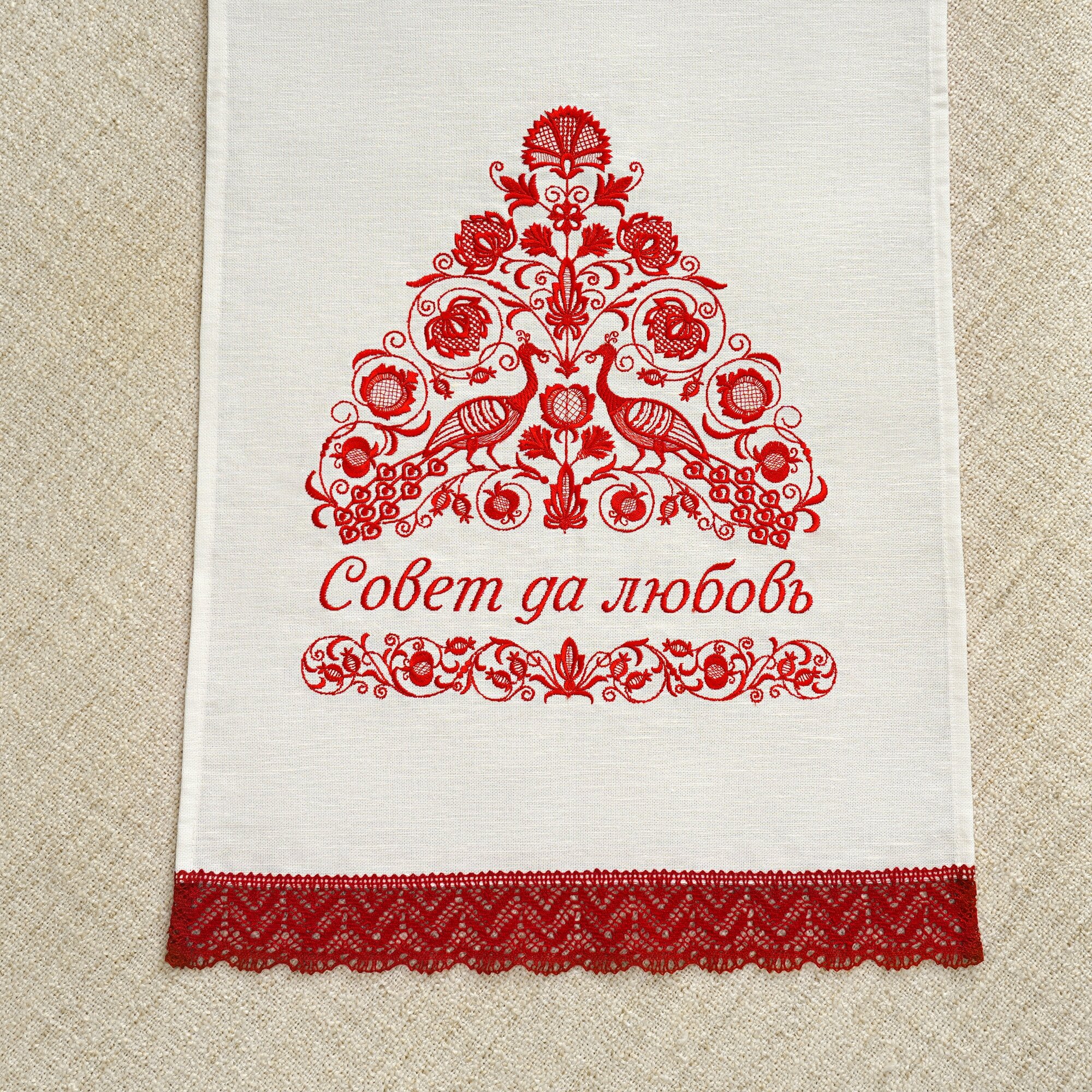 Венчальный, свадебный рушник на свадьбу и венчание с вышивкой «Павлины» льняной: сравнение цен, характеристики, фото, актуальное наличие и цены.