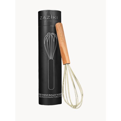Венчик для взбивания Zaziki изготовлен из оливкового дерева, что придает ему прочность и долговечность. Золотистый цвет и стильный дизайн делают его привлекательным аксессуаром на вашей кухне.