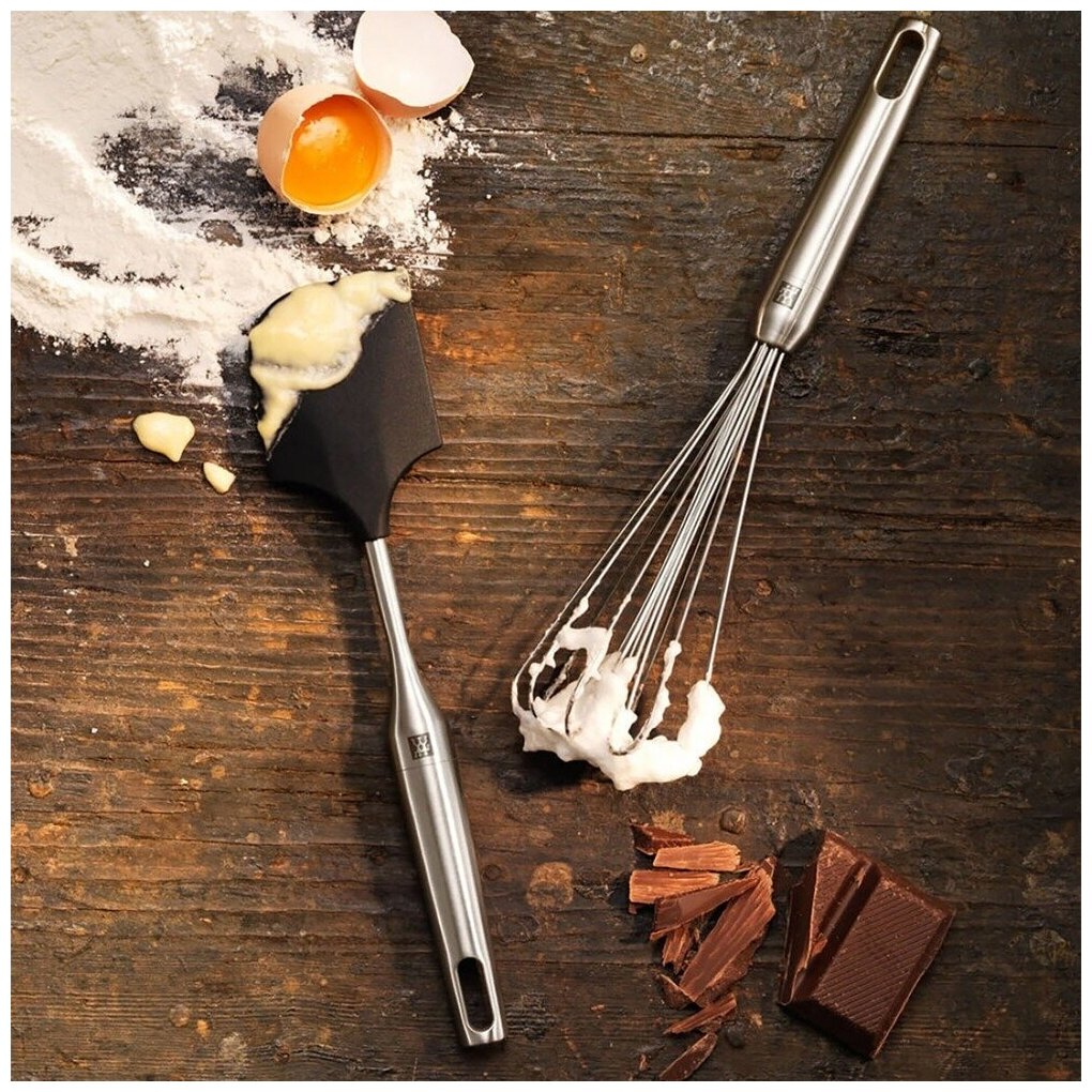 Что такое кусок сочного мяса без соуса, вкусный торт без взбитых сливок? Вот именно. Поэтому венчик - незаменимый инструмент на любой кухне. Венчик серии ZWILLING Pro - идеальный кухонный гаджет для создания особо воздушной консистенции. С ним легко и удобно обращаться благодаря эргономичной матовой ручке, которая, благодаря закругленной поверхности, не режет ладонь и облегчает работу. Инструмент изготовлен из нержавеющей стали, неприхотливой в уходе, и отличается необычным дизайном: гибкие прутья венчика переплетаются, образуя каплевидную форму. Это обеспечивает превосходный результат и идеальное взбивание. Кроме того, венчик имеет очень привлекательный внешний вид и украсит собой любой интерьер. Ведь серия ZWILLING Pro разработана всемирно известными дизайнерами Маттео Туном и Антонио Родригесом. Они создали минималистичный, современный, неподвластный времени дизайн, а благодаря превосходному мастерству изготовления с использованием лучших материалов инструмент будет радовать Вас своей долговечностью многие годы.