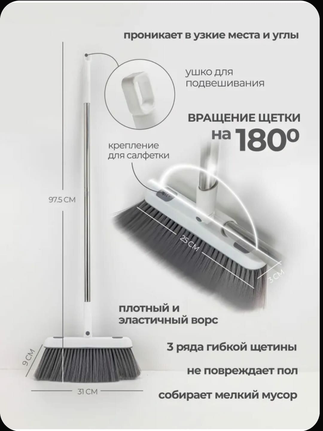 Щетка и совок с зубьями – это незаменимые инструменты для уборки и поддержания чистоты в доме, квартире или на даче. Щетка для уборки предназначена для удаления загрязнений с различных поверхностей. Ее щетинки средней жесткости изготовлены из прочного материала, что позволяет легко и быстро осуществлять чистку ламината. ПЭТ-щетина помогает провести бережную уборку, она не царапает и не повреждает плитку. Щетка хозяйственная позволяет собрать грязь тщательнее, но затратив меньше времени, щетинка улавливает катышки и волосы, не позволяя им рассеяться по всему помещению и прилипнуть к одежде. Пластиковый совок для мусора прочный, устойчивый к сколам и трещинам, поэтому прослужит вам длительное время. Благодаря гибкости и маневренности веник для пола с легкостью удаляет шерсть животных. Хозяйственные товары могут использоваться в разных комнатах дома. Щетка с совком однозначно пригодятся на кухне, чтобы убирать крошки и остатки еды. Метелка для пыли станет необходимым товаром для уборки туалета. Универсальный набор для уборки можно использовать для поддержания чистоты в комнате. Он позволит эффективно навести порядок и освежить пространство. Совок оснащен зубьями для удаления мусора с щетки. Метла с совком надежно крепятся друг другу, поэтому не занимают много места и впишутся в любой интерьер. Щетка для пола также полезна для уборки машины, она поможет удалить крошки и пыль в салоне. Комплект можно взять с собой на дачу и использовать вместо веника для пола. Метла и совок с зубьями – неотъемлемые хозяйственные товары в поддержании чистоты в Вашем доме.