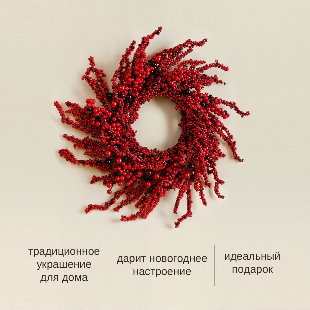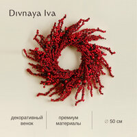 Венок декоративный новогодний красный, диаметр 50 см, украшение настенное, Divnaya Iva: сравнение цен, характеристики, фото, актуальное наличие и цены.