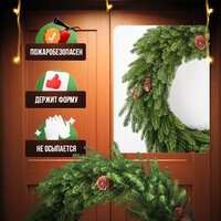 В комплекте с венком идут дополнительные элементы декора, такие как шишки, что позволяет вам самостоятельно выбрать стиль и настроение украшения.