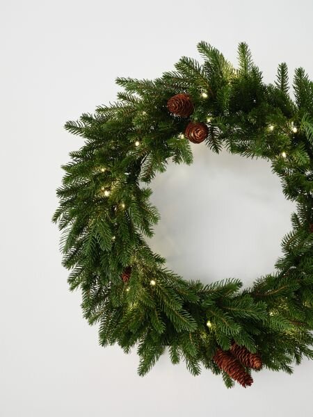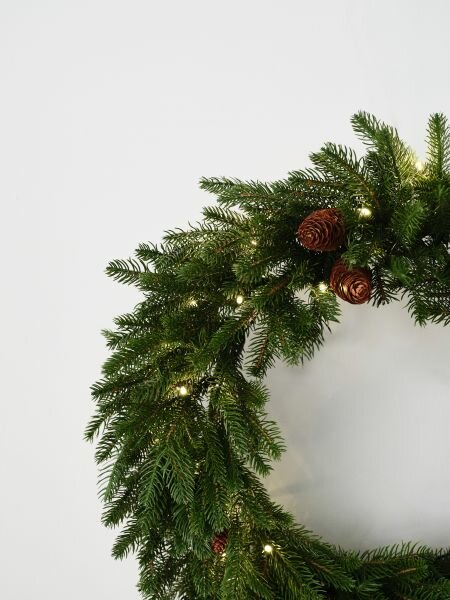 Выбирая венок рождественский хвойный Cones LED 60 см, вы получаете не только стильный и яркий элемент декора, но и источник праздничного настроения для вас и ваших близких.