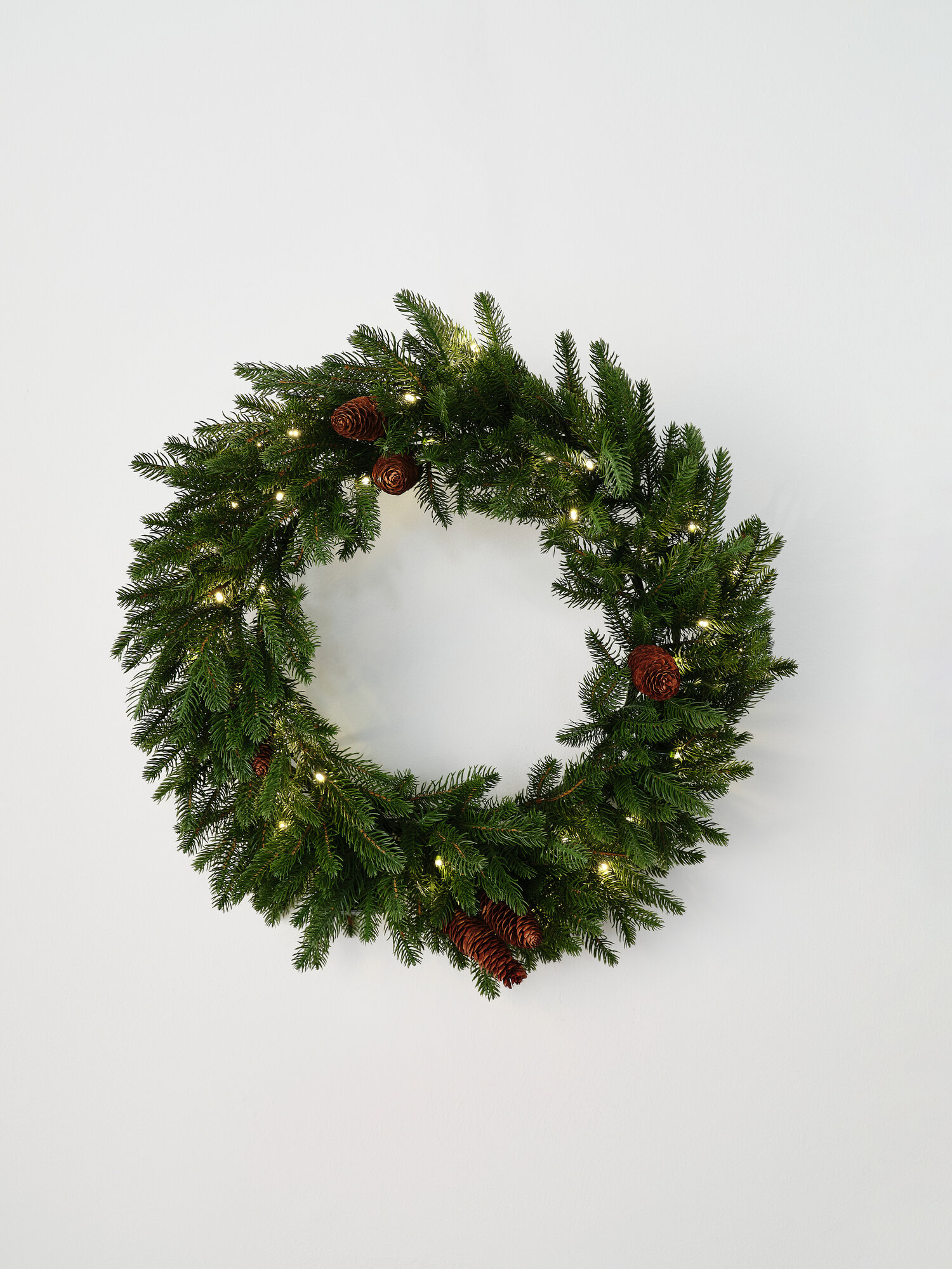 Венок рождественский хвойный Cones LED 60 см - это стильный и яркий новогодний декор, который станет прекрасным украшением вашего дома в зимние праздники.