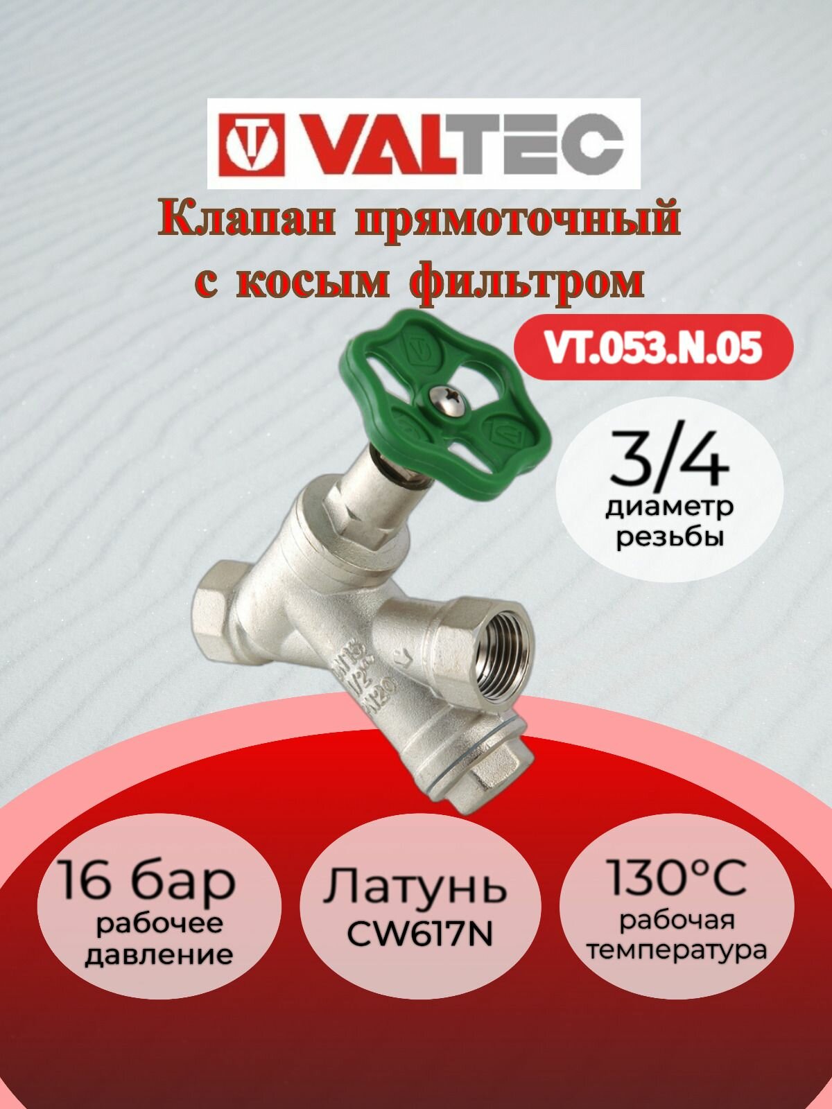 Вентиль прямоточный с косым фильтромй 3/4″ Valtec VT.053. N.05: сравнение цен, характеристики, фото, актуальное наличие и цены.