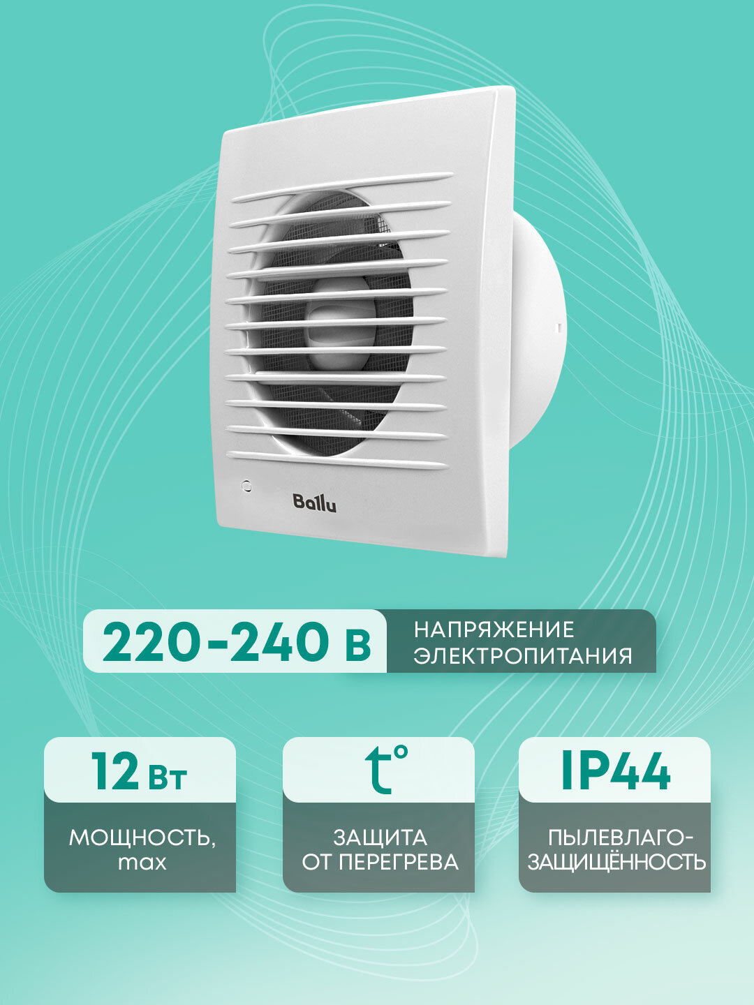 Вентилятор вытяжной Ballu FW BAF-100N, с москитной сеткой, IP44