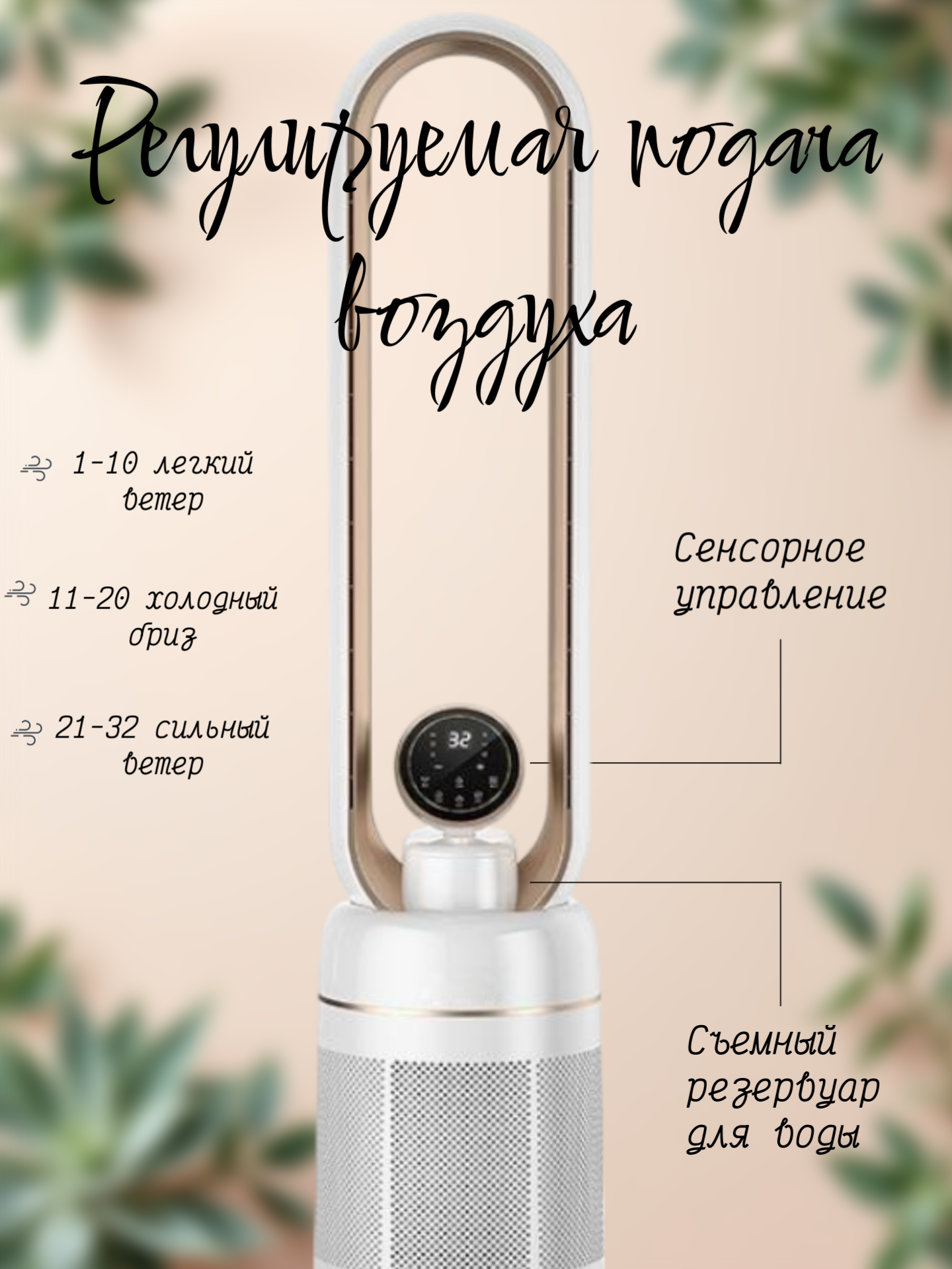 Купить Вентилятор безлопастный с увлажнением и ионизацией, пульт ДУ, 32 скорости, таймер с доставкой по всей России.