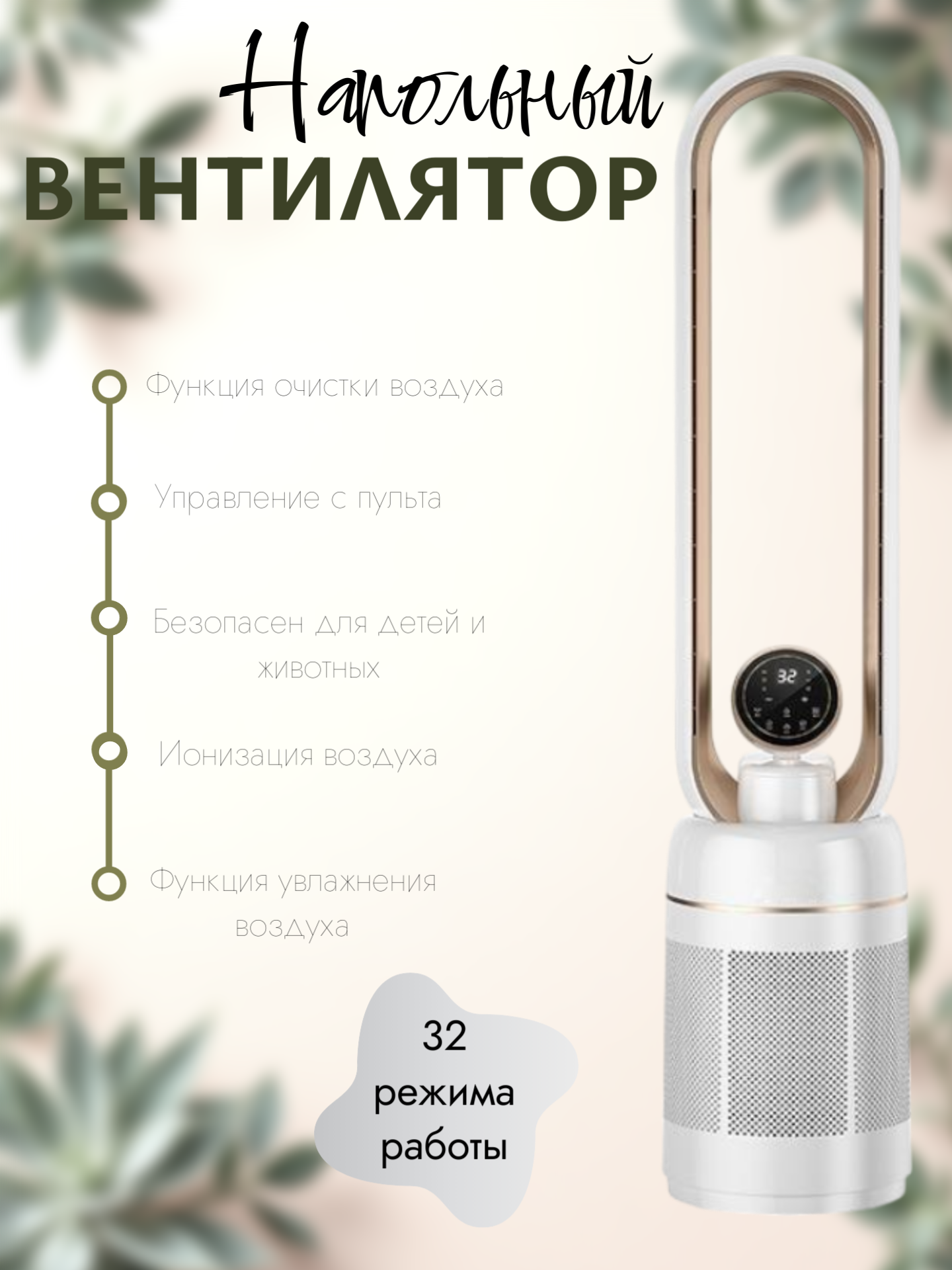 Вентилятор безлопастный с увлажнением и ионизацией, пульт ДУ, 32 скорости, таймер: сравнение цен, характеристики, фото, актуальное наличие и цены.