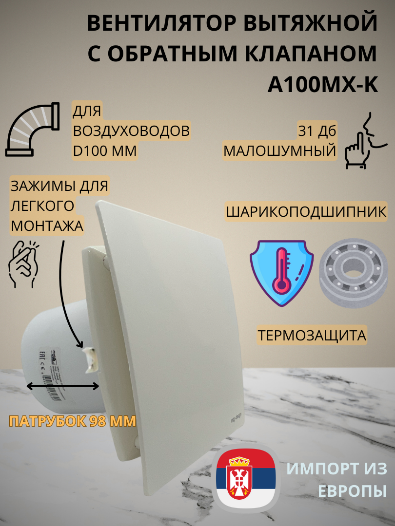 Вентилятор D100мм с пластиковой кремовой панелью, с обратным клапаном и креплением без сверления A100МX-K, Сербия: сравнение цен, характеристики, фото, актуальное наличие и цены.