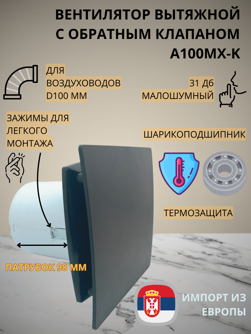 Вентилятор D100мм с пластиковой матовой панелью цвета антрацит, с обратным клапаном и креплением без сверления EXTRA A100МX-K, Сербия: сравнение цен, характеристики, фото, актуальное наличие и цены.