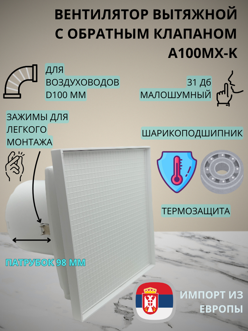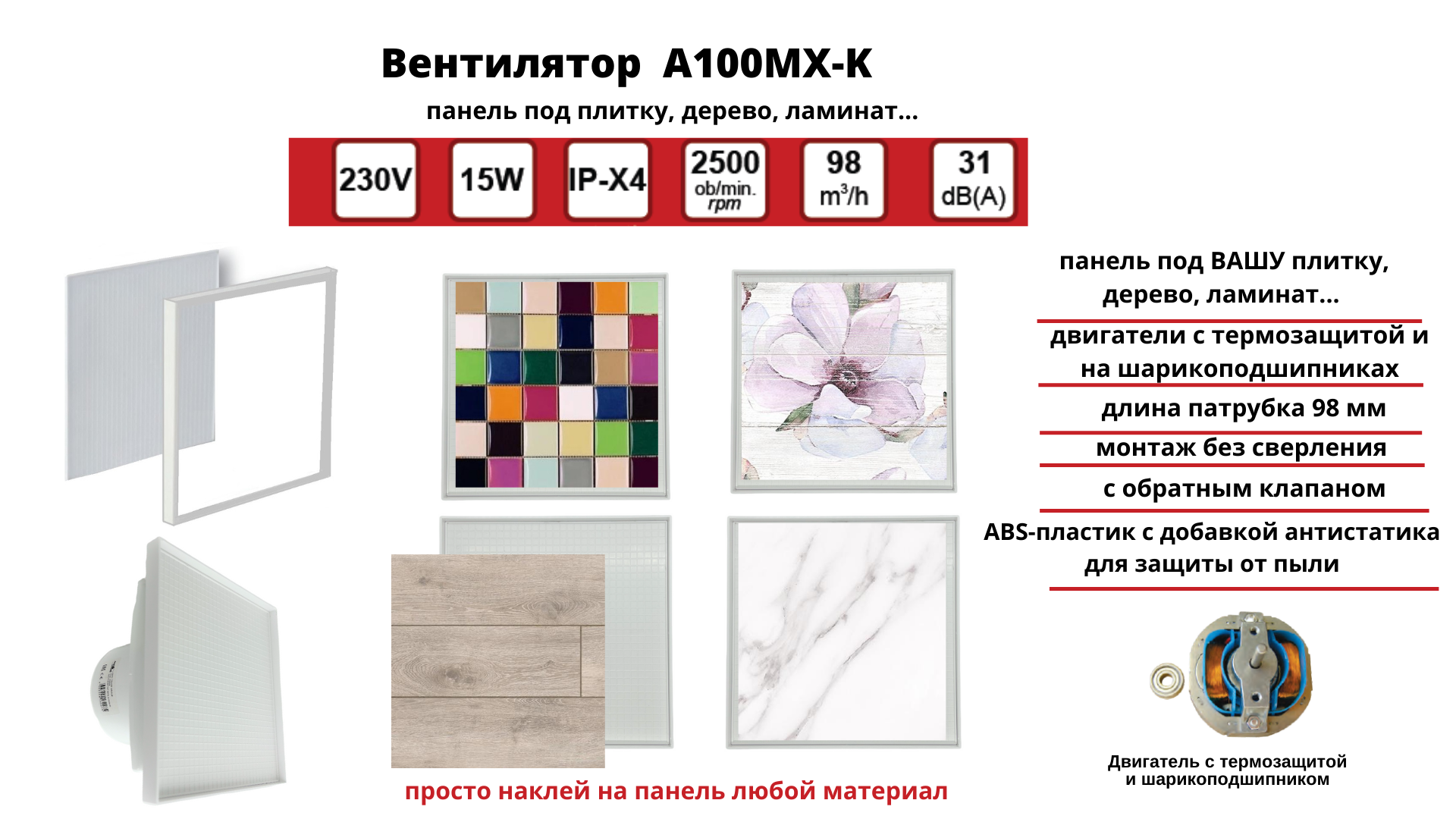 Вентилятор D100мм с пластиковой панелью под любую вашу плитку, с обратным клапаном и креплением без сверления A100МX-PL, Сербия: сравнение цен, характеристики, фото, актуальное наличие и цены.