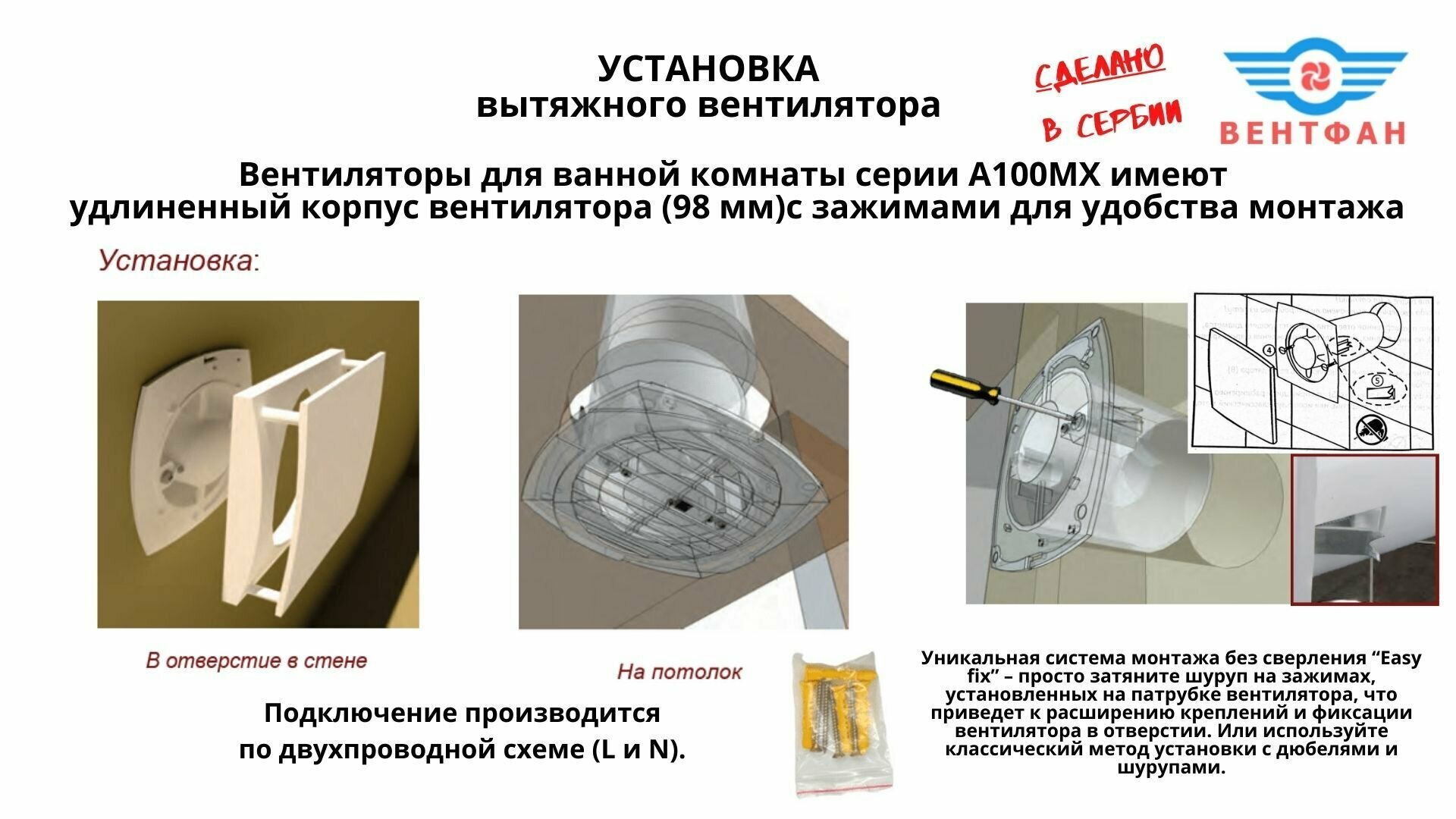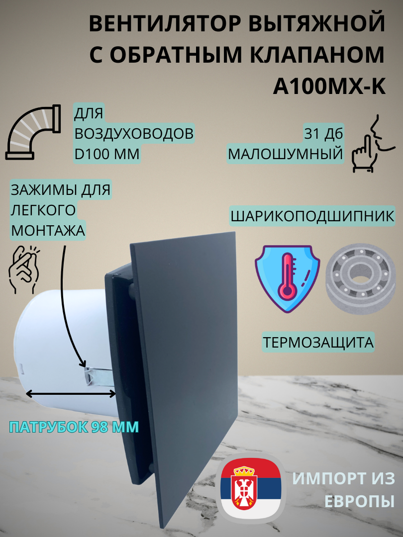 Вентилятор D100мм с пластиковой плоской матовой панелью цвета антрацит, с обратным клапаном и креплением без сверления MATT A100МX-PL, Сербия: сравнение цен, характеристики, фото, актуальное наличие и цены.