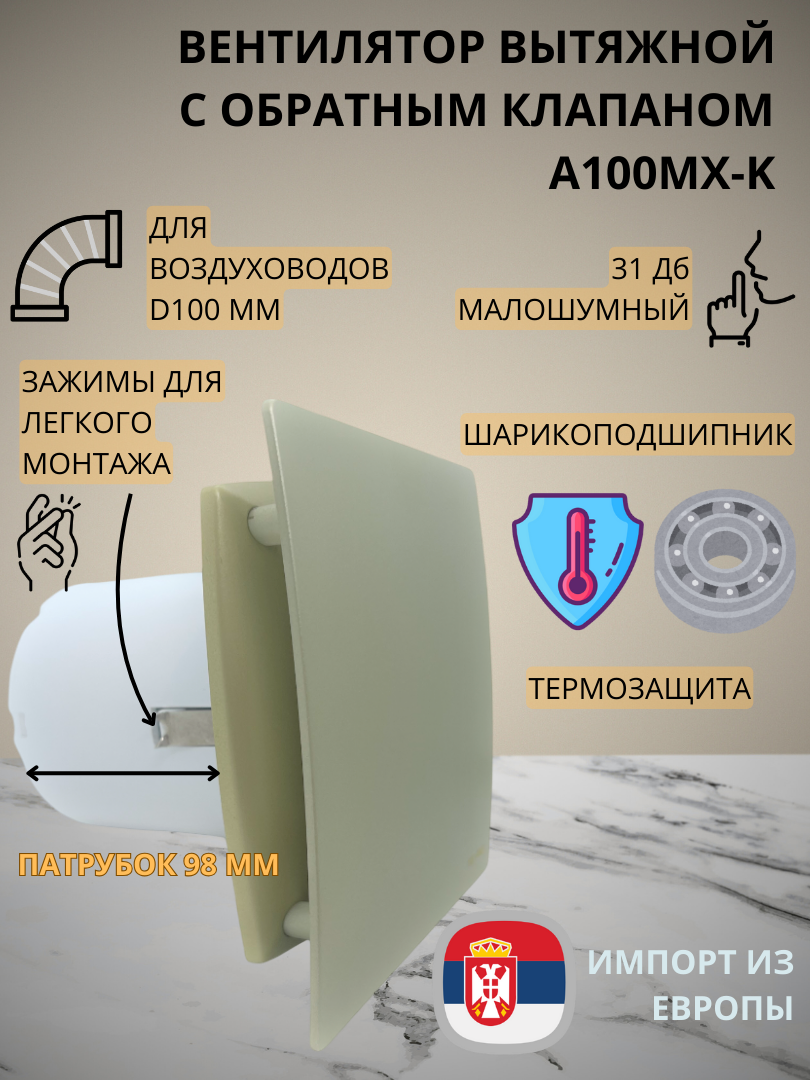 Вентилятор D100мм с пластиковой золотой панелью, с обратным клапаном и креплением без сверления EXTRA A100МX-K, Сербия: сравнение цен, характеристики, фото, актуальное наличие и цены.