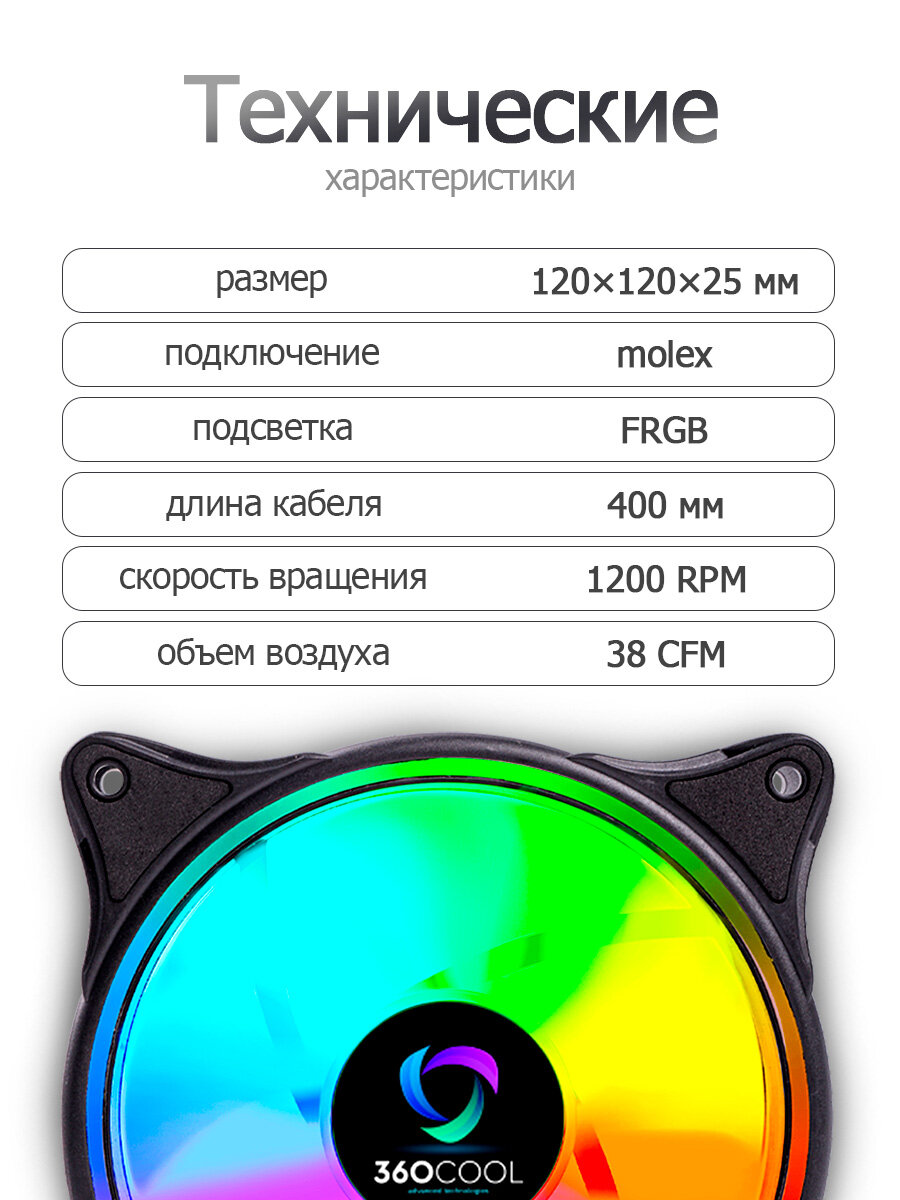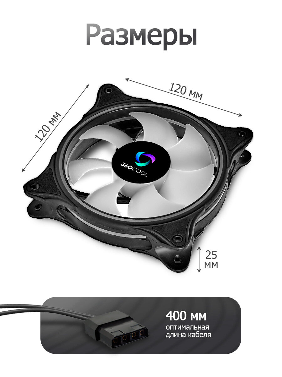 Вентилятор для корпуса ПК (кулер) 120мм подсветка FRGB, подключение к блоку питания MOLEX (4-pin), 360COOL, 4шт, черный: сравнение цен, характеристики, фото, актуальное наличие и цены.