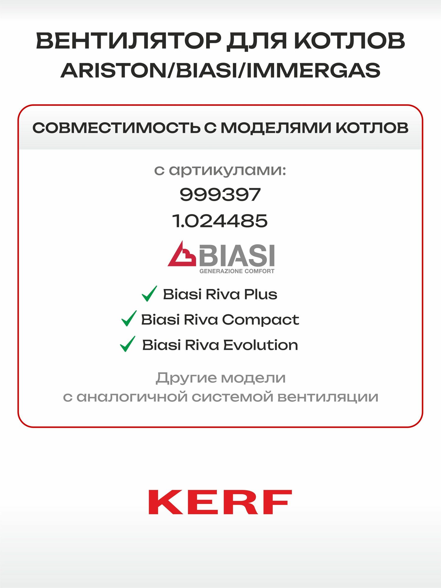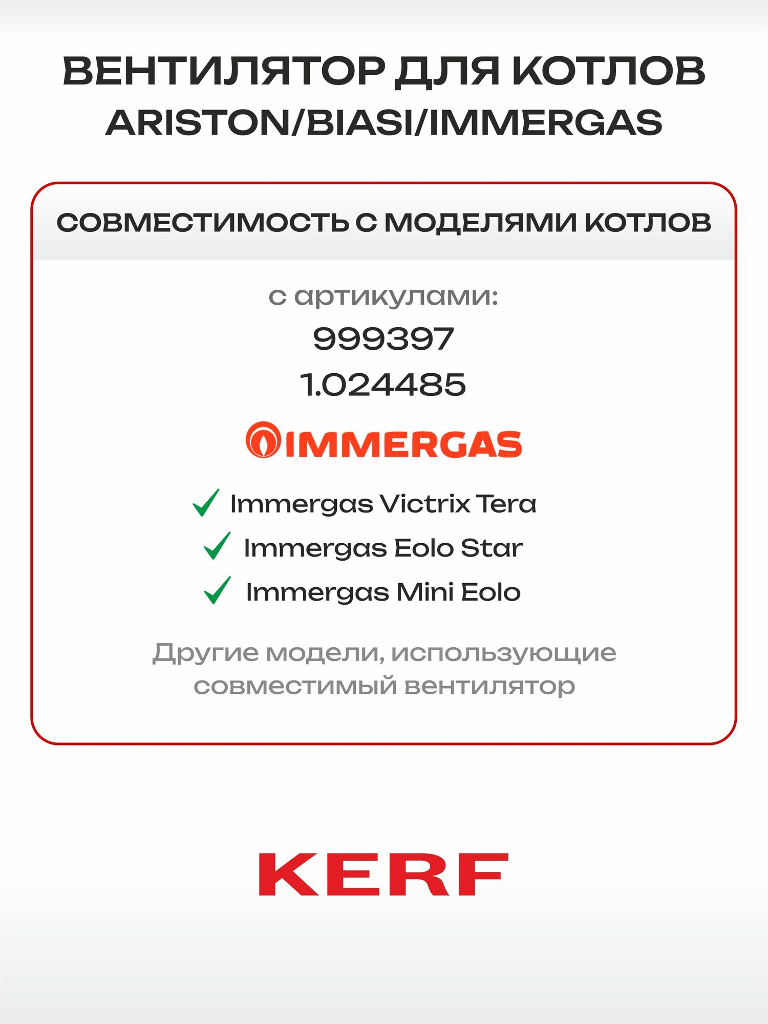 Вентилятор для котла KERF Ariston, Biasi, Immergas (999397; 1.024485)VGR0132861: сравнение цен, характеристики, фото, актуальное наличие и цены.