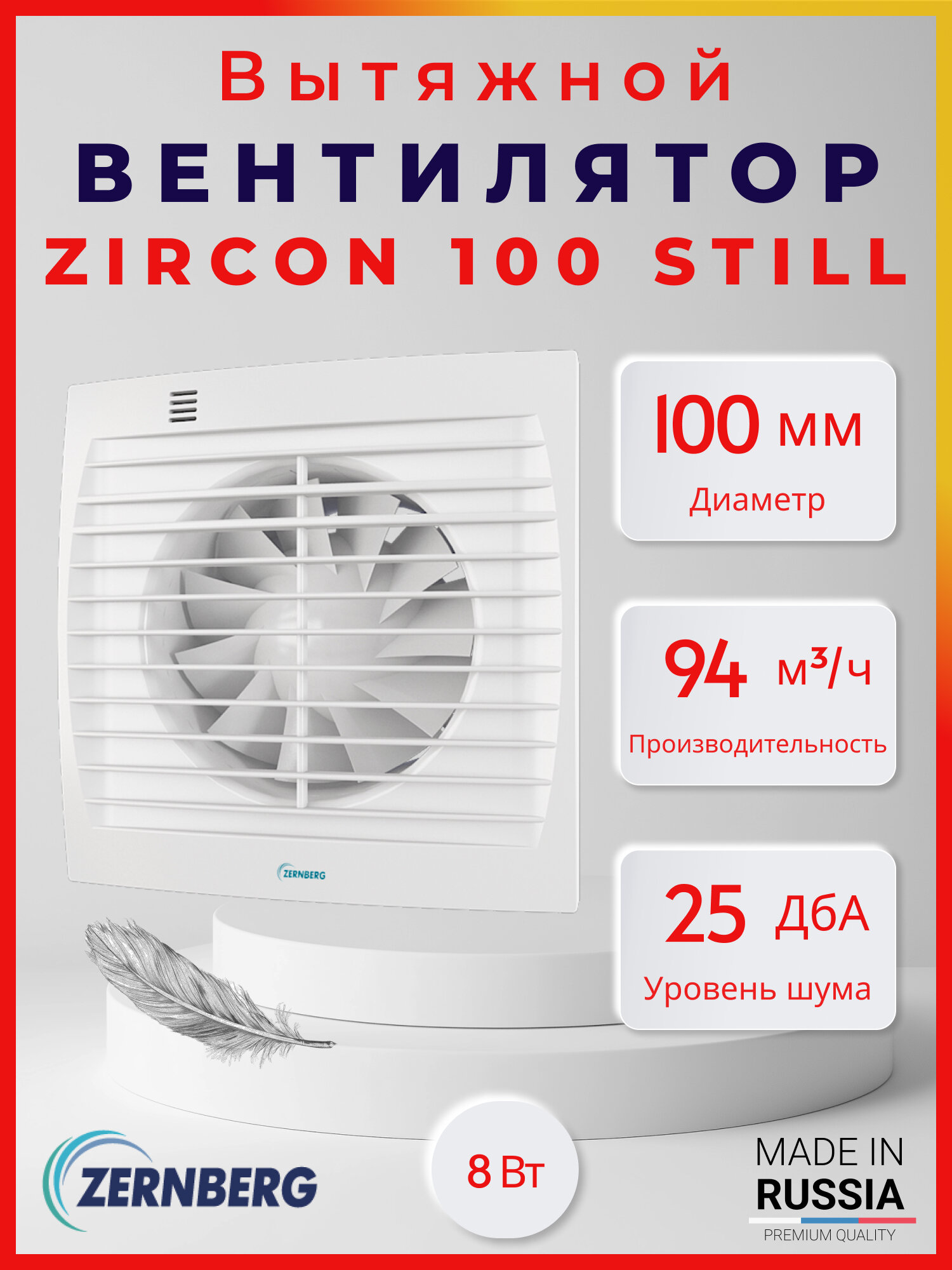 Купить Вентилятор для кухни и ванны бесшумный 100мм Zernberg Zircon 100S, осевой, белый с доставкой по всей России.