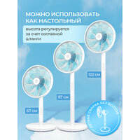 | Дополнительная информация | 7 лопастей, регулировка высоты в 2 вариантах: ~ от 70 см до 115 см, использование 2 в 1: напольный или настольный, поворот на 90 градусов, регулировка наклона вверх/вниз. |
