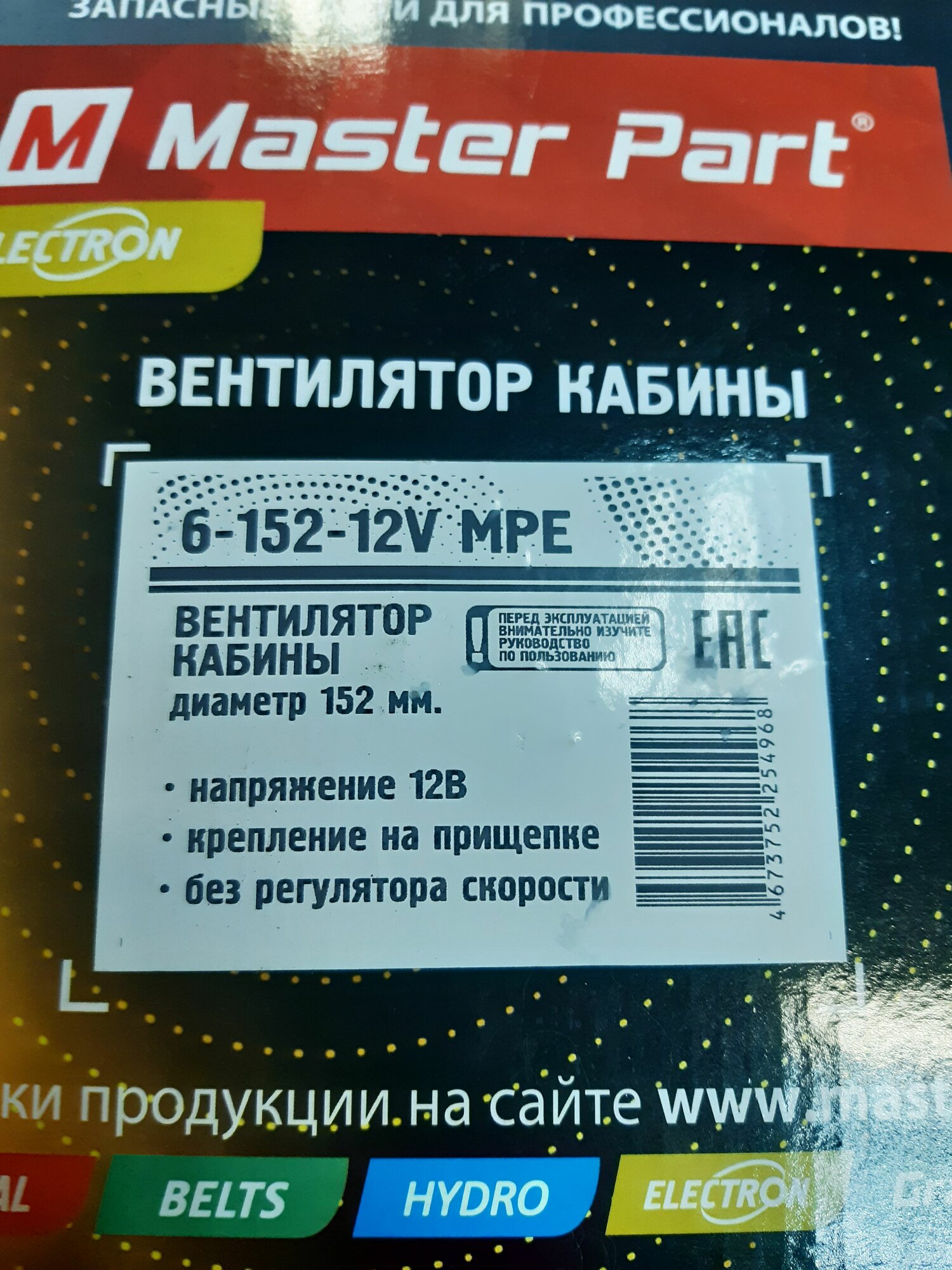 Купить Вентилятор кабины 12В(D-152 мм) Универсальный кронштейн-прищепка 6-152-12V МРЕ Master Part с доставкой по всей России.