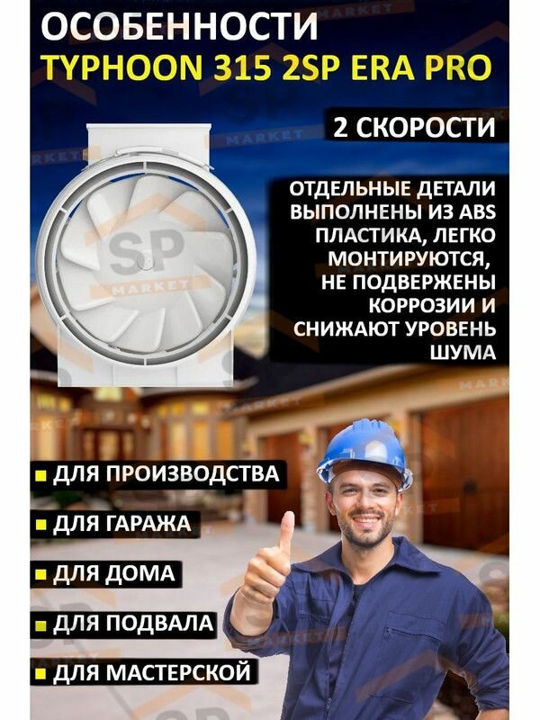 Вентилятор ERA TYPHOON 315 2SP подходит для установки в промышленных помещениях, гаражах, подвальных помещениях, а также на промышленных предприятиях.