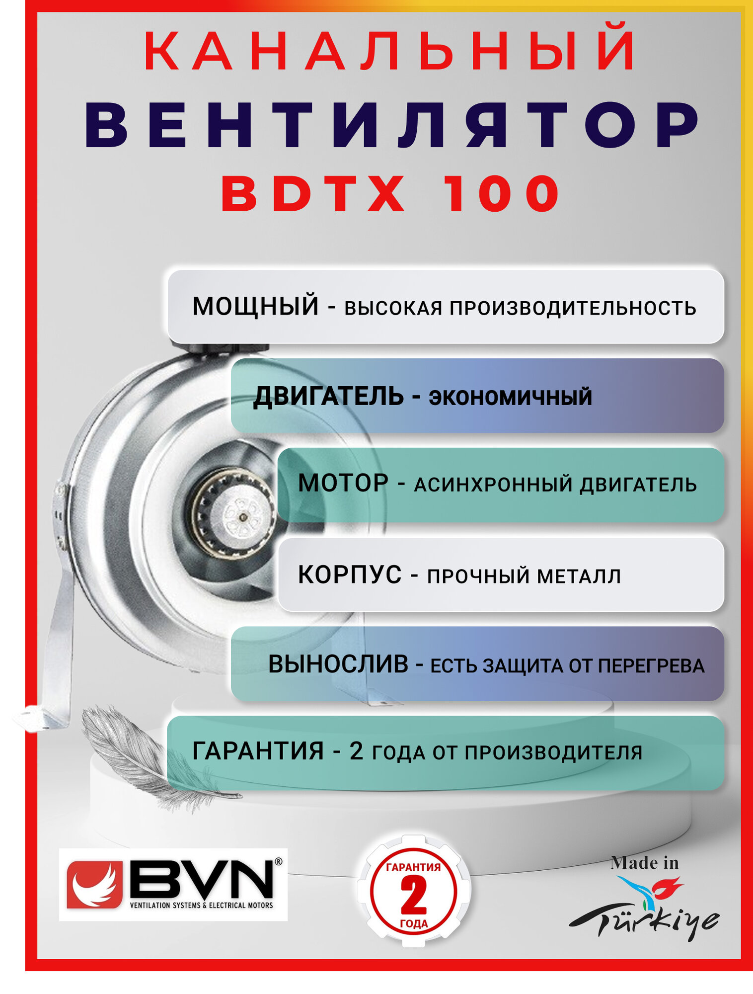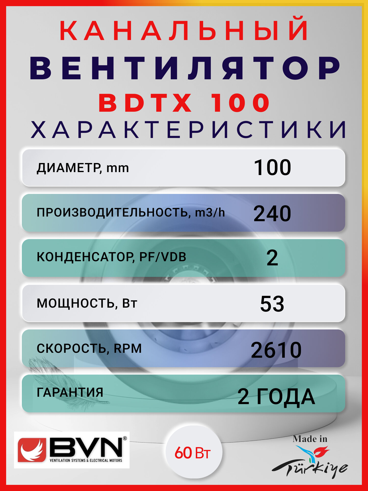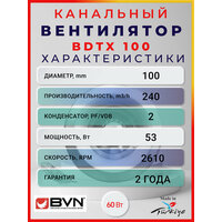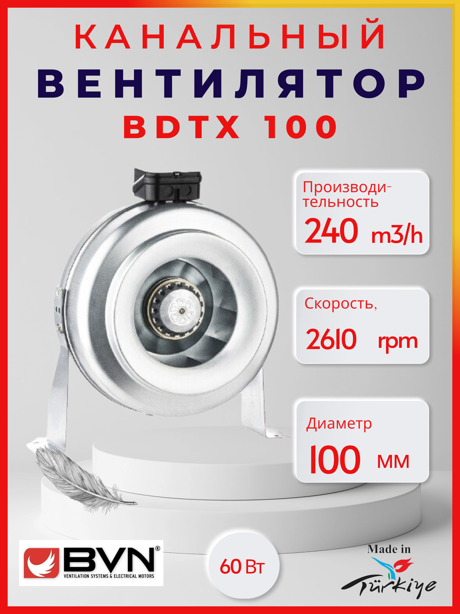 Вентилятор канальный круглый BDTX 100, оцинкованный металл, D подключения 100мм, производительность 240 м/ч: сравнение цен, характеристики, фото, актуальное наличие и цены.