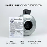 Круглый канальный вентилятор ВКК-100 с производительным электродвигателем в металлическом корпусе.