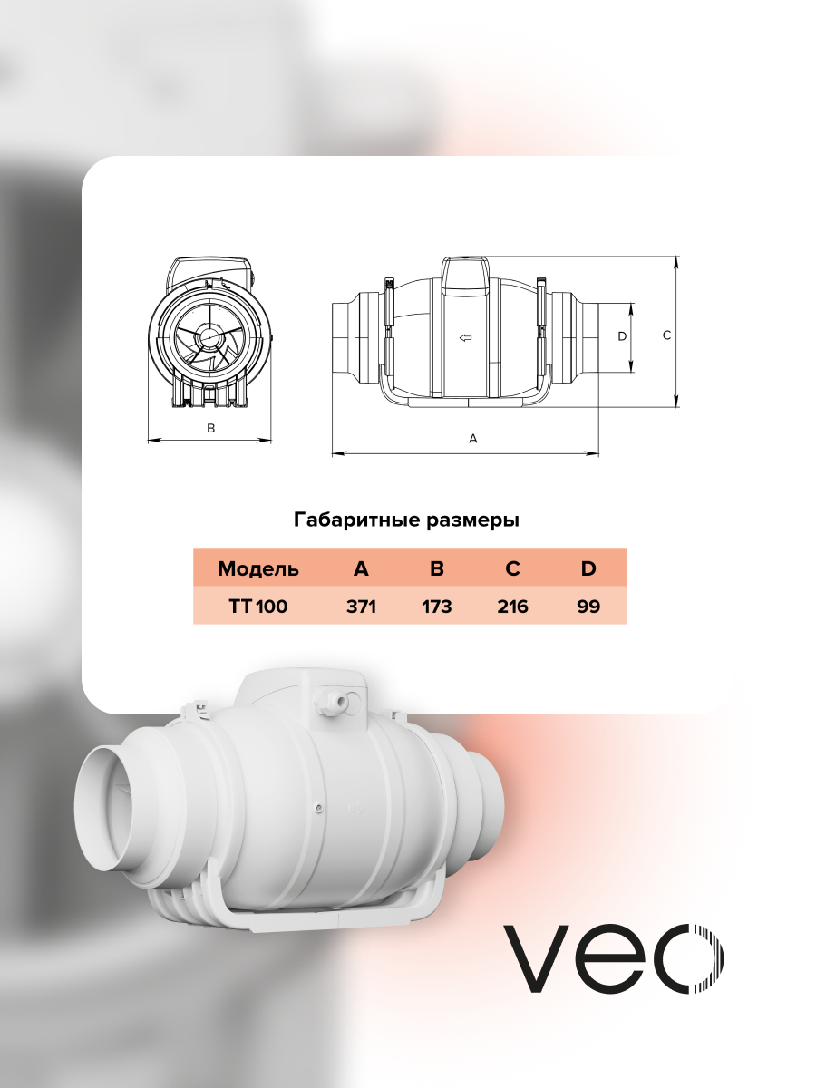 Вентилятор канальный TT 100 осевой 2 скор, диаметр 100 мм, 250 м3/ч приточно — вытяжной, малошумный, VEO, 40 дб: сравнение цен, характеристики, фото, актуальное наличие и цены.