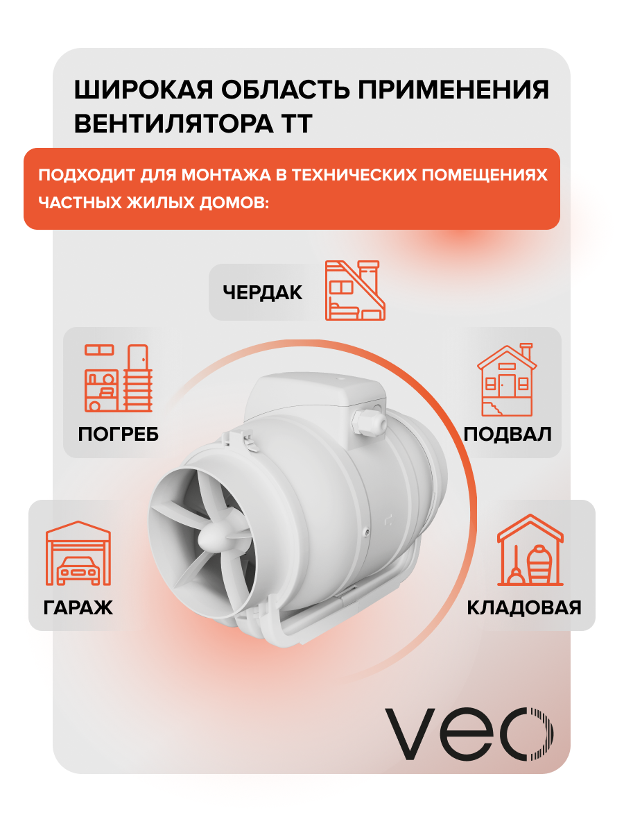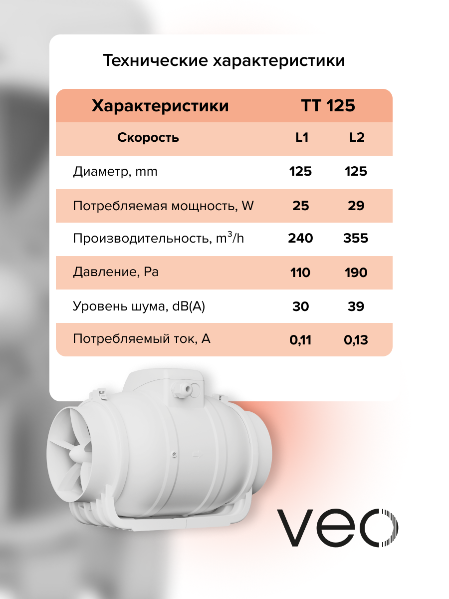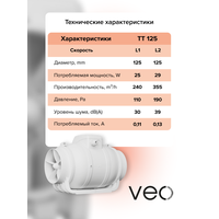 Вентилятор канальный TT 125 осевой 2 скор, диаметр 125 мм, 355 м3/ч приточно — вытяжной, малошумный, VEO, 39 дб: сравнение цен, характеристики, фото, актуальное наличие и цены.