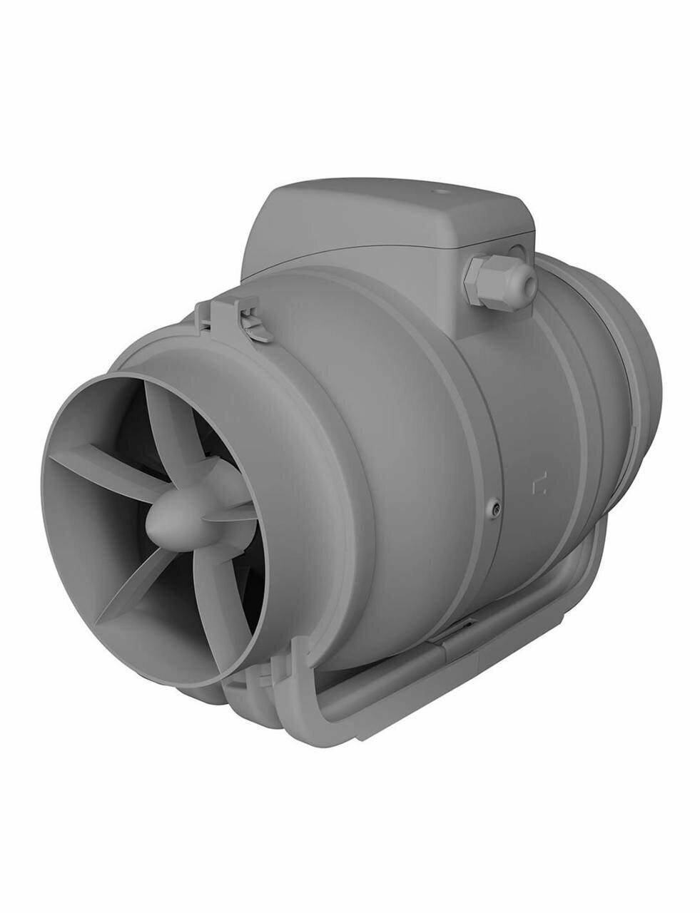 Канальный осевой вентилятор смешанного типа в корпусе из пластика. Предназначен для приточно-вытяжных систем вентиляции промышленных, общественных и жилых зданий. Имеет разборную конструкцию, что упрощает обслуживание: съемный центральный блок с двигателем, крыльчаткой и клеммной коробкой крепится к боковым патрубкам пластиковыми хомутами. В TYPHOON 125 2SP устанавливается двухскоростной однофазный двигатель на шарикоподшипниках с длительным сроком службы, встроенной тепловой защитой и автоматическим перезапуском. Асимметричная форма клеммной коробки облегчает подключение сетевого провода. Вентилятор имеет две скорости работы, выбор скорости осуществляется при подключении питания к клеммам, либо с помощью кнопки (входит в комплект, устанавливается самостоятельно по желанию пользователя). Устройство подходит для горизонтального и вертикального монтажа, крепление к поверхности осуществляется с помощью саморезов.