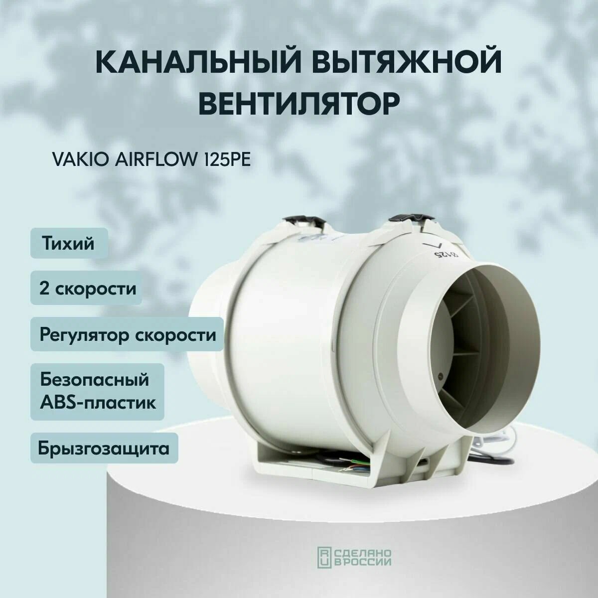 Вентилятор канальный VAKIO AirFlow, 125 PE, белый, энергосберегающий, IP44