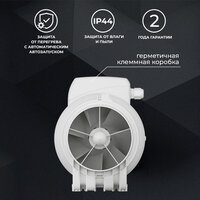 Оснащен однофазным двухскоростным двигателем на шарикоподшипниках, которые обеспечат до 40 тысяч часов непрерывной работы.