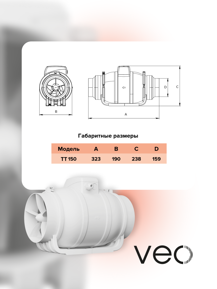 Вентилятор канальный VEO TT 150, осевой, 2 скорости, приточно-вытяжной, малошумный, вытяжка в гараж, подвал, на склад: сравнение цен, характеристики, фото, актуальное наличие и цены.