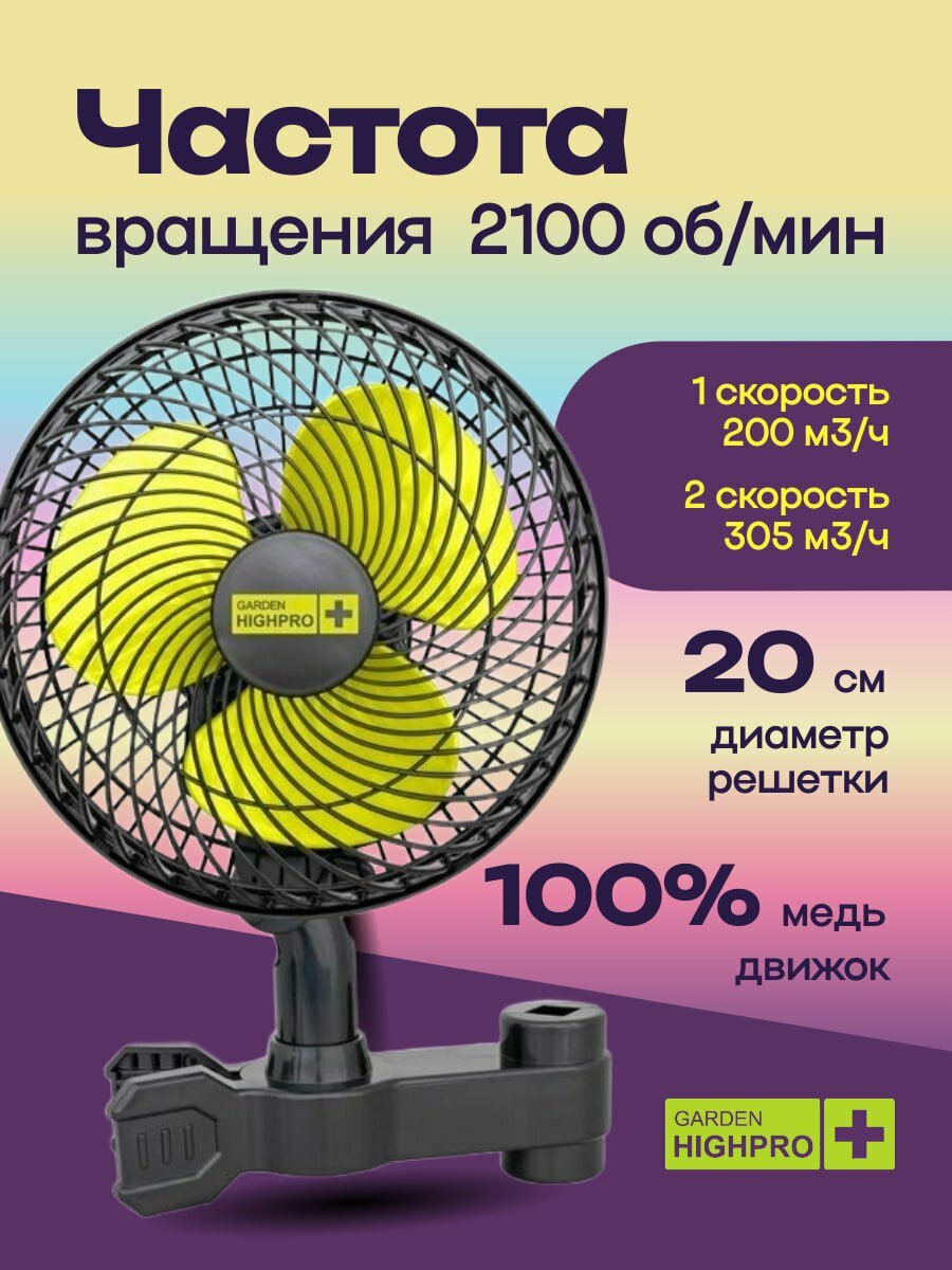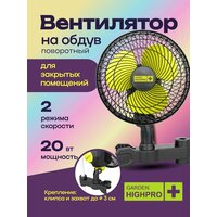 Вентилятор на клипсе CLIP FAN 20 cм - 20 Вт от компании GARDEN HIGHPRO — это удобное и доступное устройство для обдува растений в гроубоксе. Благодаря специальному креплению его можно разместить в любом месте тента.