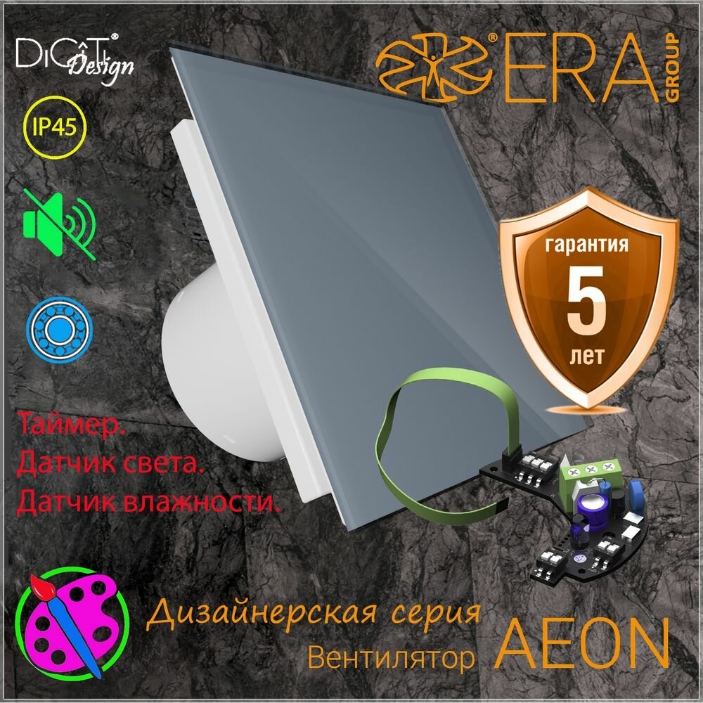 Вентилятор накладной с таймером датчиком влажности и света AEON 4С D100 MRH DiCiTi Голубовато серый панель стекло.: сравнение цен, характеристики, фото, актуальное наличие и цены.