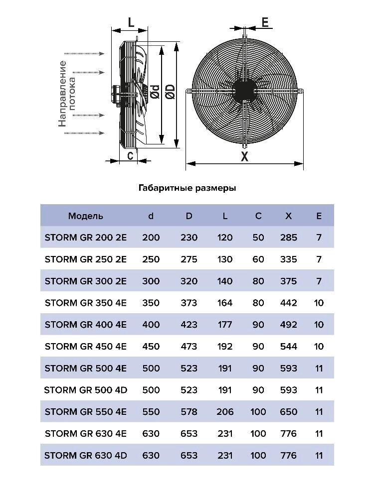 Осевой накладной вентилятор STORM GR с защитной сеткой используется в большей степени для охлаждения теплообменников компрессорно-конденсационных блоков крупногабаритного промышленного оборудования: холодильных камер, шкафов, ледогенераторов, кондиционеров и т. д. Также подходит для вытяжных и приточно-вытяжных систем вентиляции, где требуется высокая производительность при относительно низком сопротивлении системы. В зависимости от способа установки может работать как на приток, так и на вытяжку воздуха.