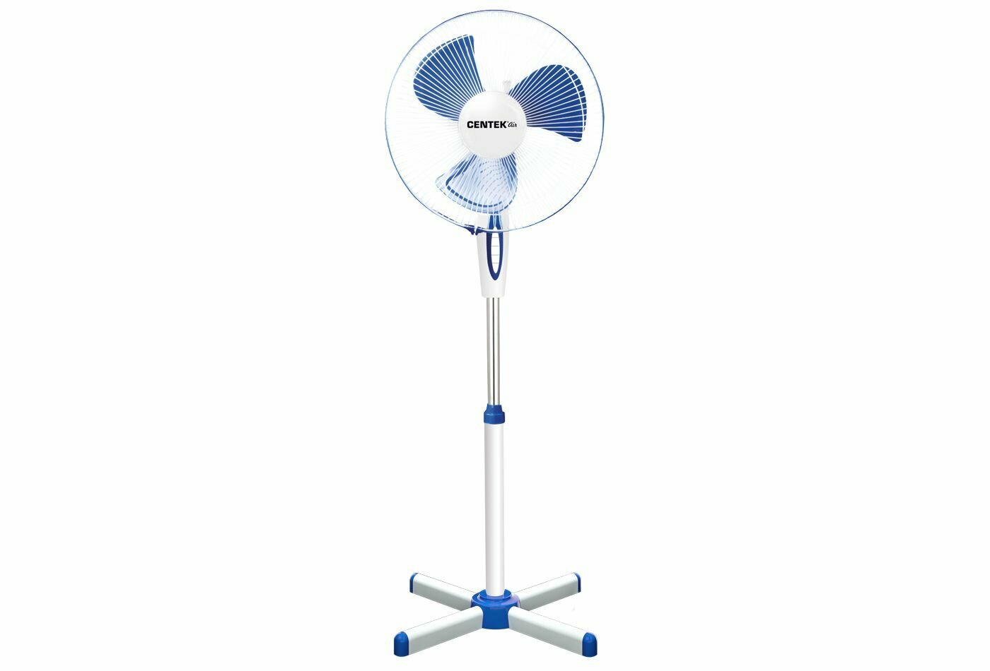Вентилятор Centek CT-5015 предназначен для напольного размещения. Крестообразное металлическое основание с прорезиненными накладками обеспечивает конструкции устойчивость. Модель оснащена тремя широкими лопастями изогнутой формы, формирующими мощный направленный воздушный поток. Имеет три регулируемых скоростных режима, а также возможность корректировать головку вентилятора по наклону. По высоте конструкция регулируется при помощи телескопической стойки. Обдув на 90° настраивается нажатием одной кнопки на корпусе. Панель управления вентилятором расположена на опоре. В темное время суток можно включить подсветку, работающую как ночник.