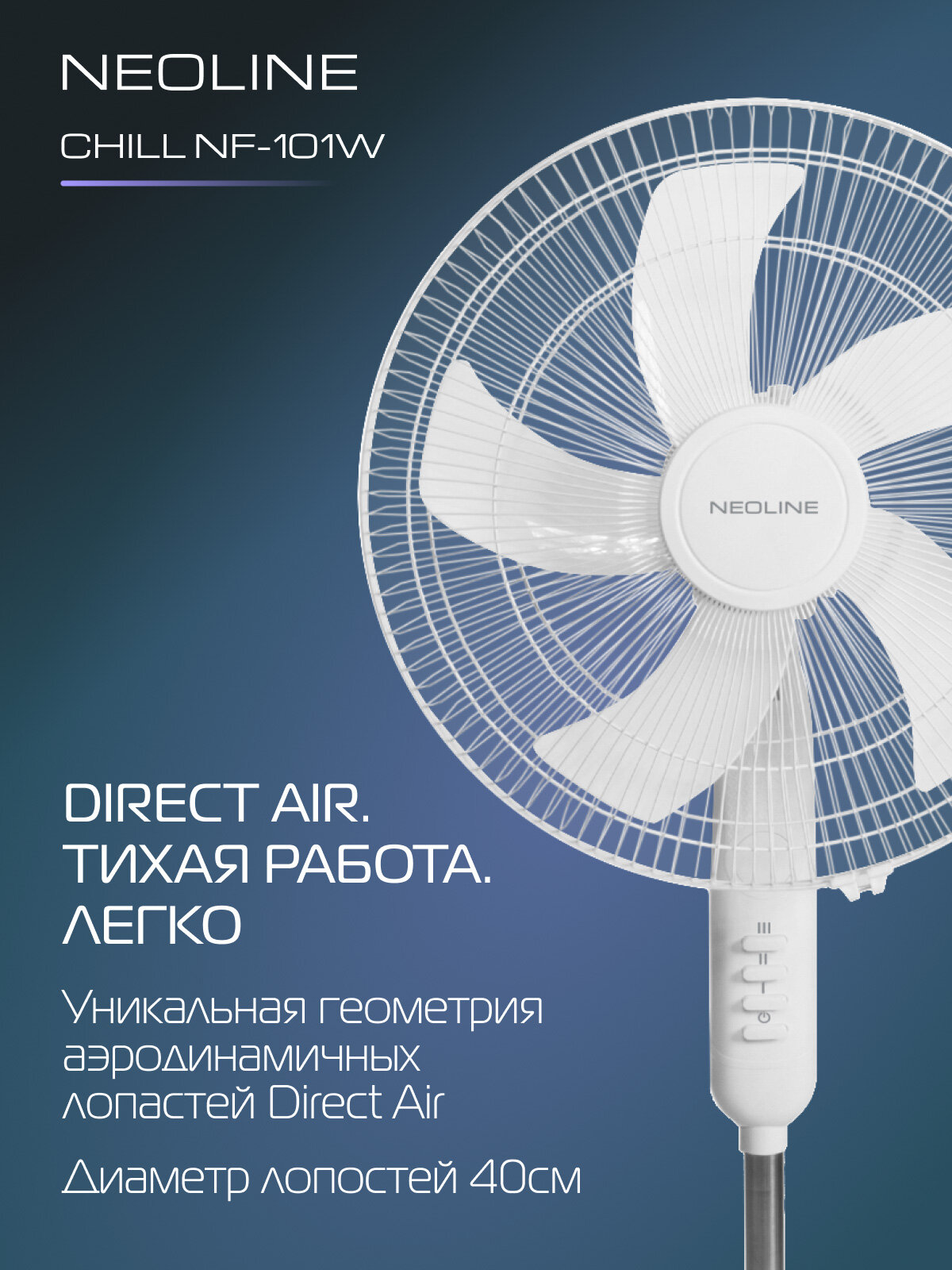 Купить Вентилятор напольный NEOLINE CHILL NF-101W с доставкой по всей России. Вентилятор напольный NEOLINE CHILL NF-101W: сравнение цен, характеристики, фото, актуальное наличие и цены.