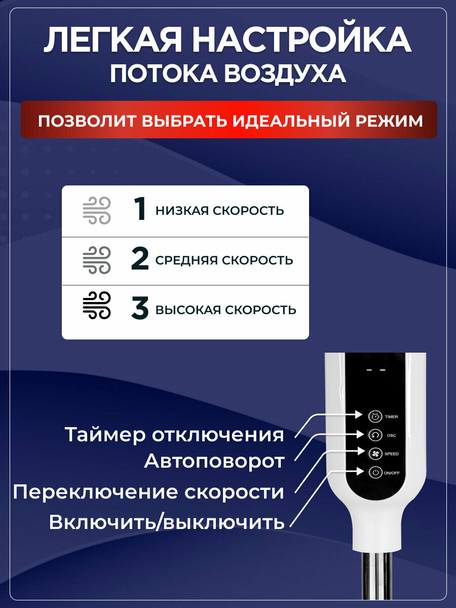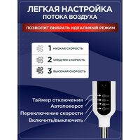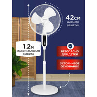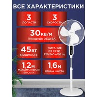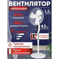 Вентилятор напольный сенсорный, 3 скорости, 3 лопасти, 45Вт, 120см, белый, пульт ДУ, MW SF-4144