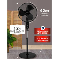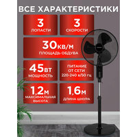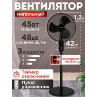 Вентилятор напольный сенсорный, 3 скорости, 3 лопасти, 45Вт, 120см, пульт ДУ, черный, MW SF-4145: сравнение цен, характеристики, фото, актуальное наличие и цены.