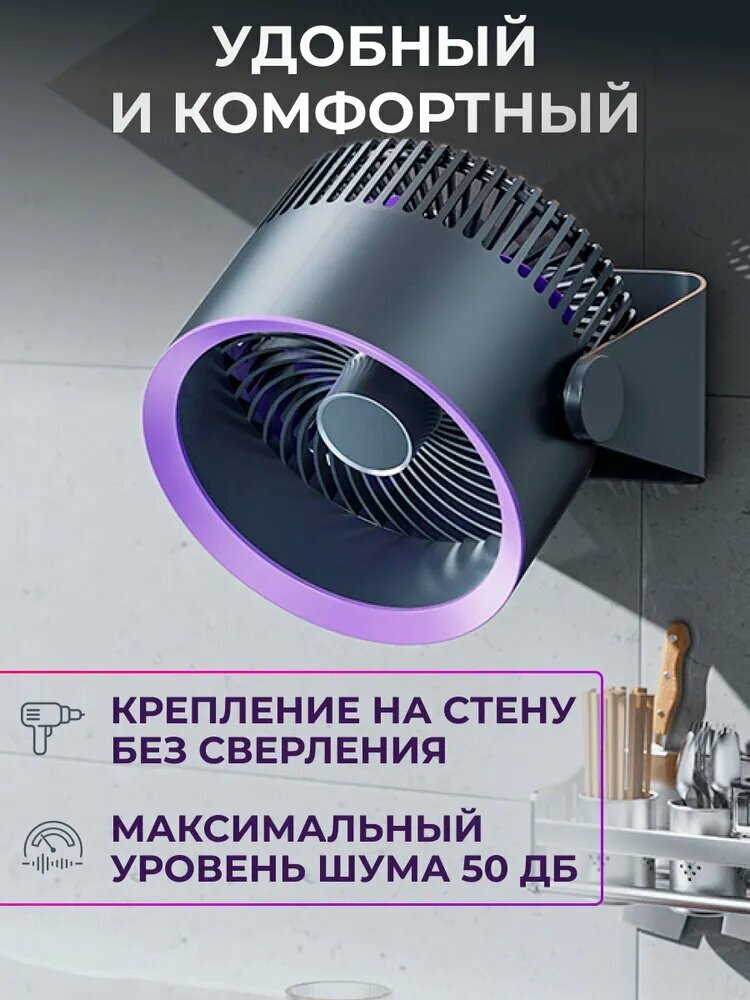 Представляем вашему вниманию настольный беспроводной настенный вентилятор. Этот продукт отличается своей портативностью и удобством использования. Беспроводной вентилятор обеспечивает свободу перемещения и возможность установки в любом месте. Благодаря отсутствию проводов, вентилятор можно легко перемещать по комнате или даже взять с собой на улицу. Особенностью данного вентилятора является его бесшумность. Это делает его отличным выбором для использования в спальне или в офисе. Вентилятор работает от USB, что позволяет использовать его с любым источником питания. Это делает его удобным для использования в любом месте, где есть доступ к электричеству. Продукт выполнен в стильных серых и фиолетовых тонах, что делает его не только функциональным, но и стильным дополнением к интерьеру. В целом, настольный беспроводной настенный вентилятор - это удобный, функциональный и стильный выбор для тех, кто ценит комфорт и удобство.