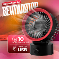 Вентилятор настольный бесшумный лопастной USB, 10 скоростей NAS-1 черный, красный