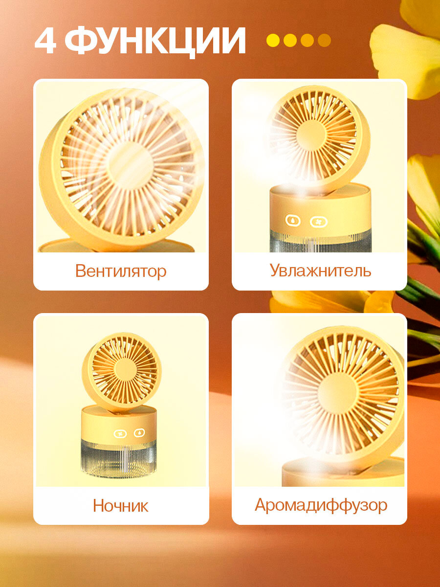 Вентилятор настольный бесшумный с увлажнителем воздуха, аромадиффузор беспроводной, USB Aroma Желтый: сравнение цен, характеристики, фото, актуальное наличие и цены.